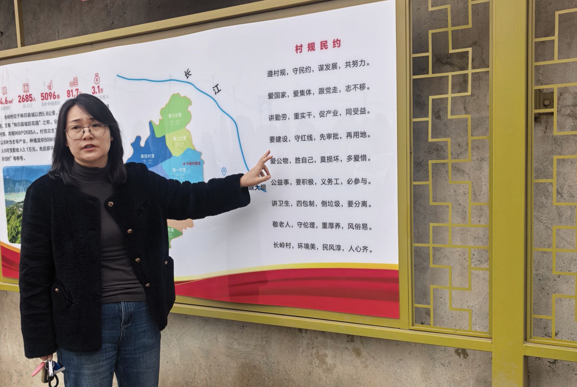 阳春三月,走进秭归县茅坪镇长岭村,满山茶园叠翠,村道干净整洁,农家庭院雅致有序。村头宣传栏上,一则“...