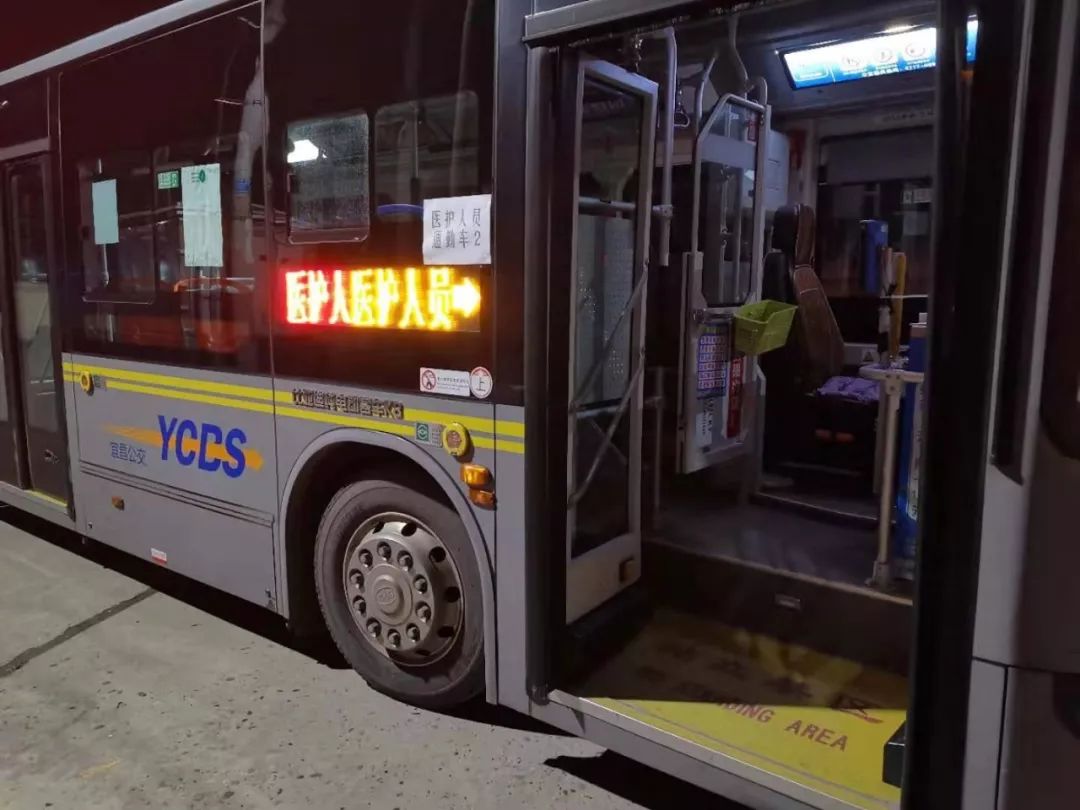 为保障宜昌市抗击疫情一线医务工作者、医护人员上下班的通勤需求,在宜昌市交通运输局的指导下,自1月28日起,由宜昌公交集团紧急调配开通医护人员通勤公交,每天早晚将围绕城区各大医院和主干道定点开行停靠,为宜昌城区医护人员提供通勤服务。首批开通的医护人员通勤公交线路有两条,每条线路各两辆公交车,驾驶员均经过严格甄选,车辆均经过清洁消杀,具备当前通勤保障条件。医护人员通勤公交仅限医护人员乘坐,医护人员出示工作证件可免费乘坐,宜昌公交集团还将根据医护人员出行需求,新增、优化及调整医护人员通勤公交运行方案。