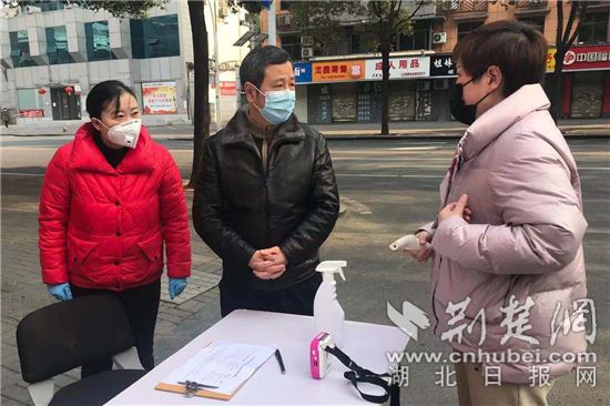 宜昌市伍家岗区退役军人事务管理局工作人员在疫情防控检查点执勤。(通讯员 供图)