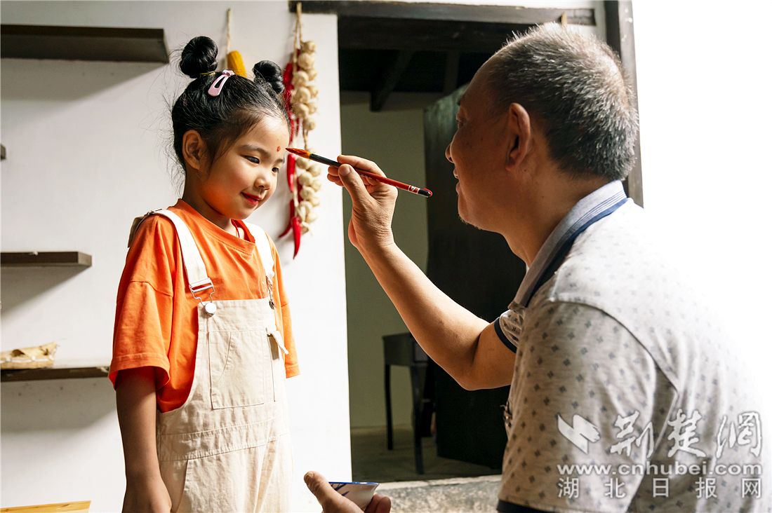长者为小孩点雄黄酒祈平安。通讯员 向红梅 摄