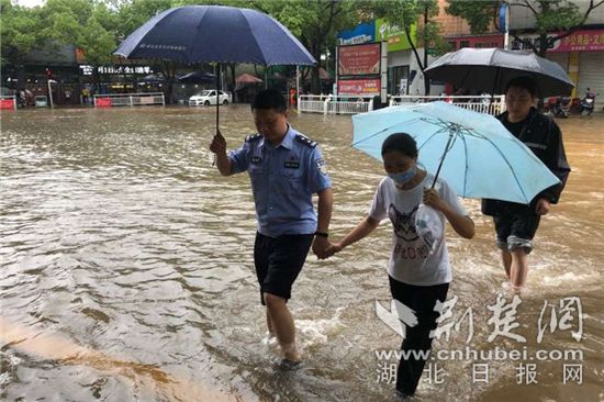 李军等3名民警坚守在鸣凤镇南门村8组泉水冲一处积水60公分的洪水路段,冒雨转移9名老人和小孩、8台车辆。71岁的汪大爷在医院做完肾透析返回时,途径该处被洪水拦截,无法回家,李军等民警搀扶老人淌过40米的洪水路段,将老人送回家中。