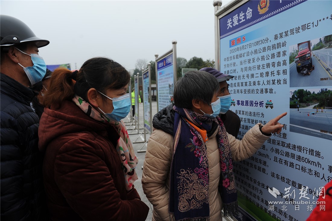 荆楚网客户端—荆楚网消息(通讯员傅武第、罗敏)今年12月2日是第九个全国“交通安全日”。夷陵区公安局联合该区交通局、人寿保险、小溪塔街道、仓屋榜村委会等单位,在仓屋榜村举办“知危险会避险、安全文明出行”交通安全宣传活动。