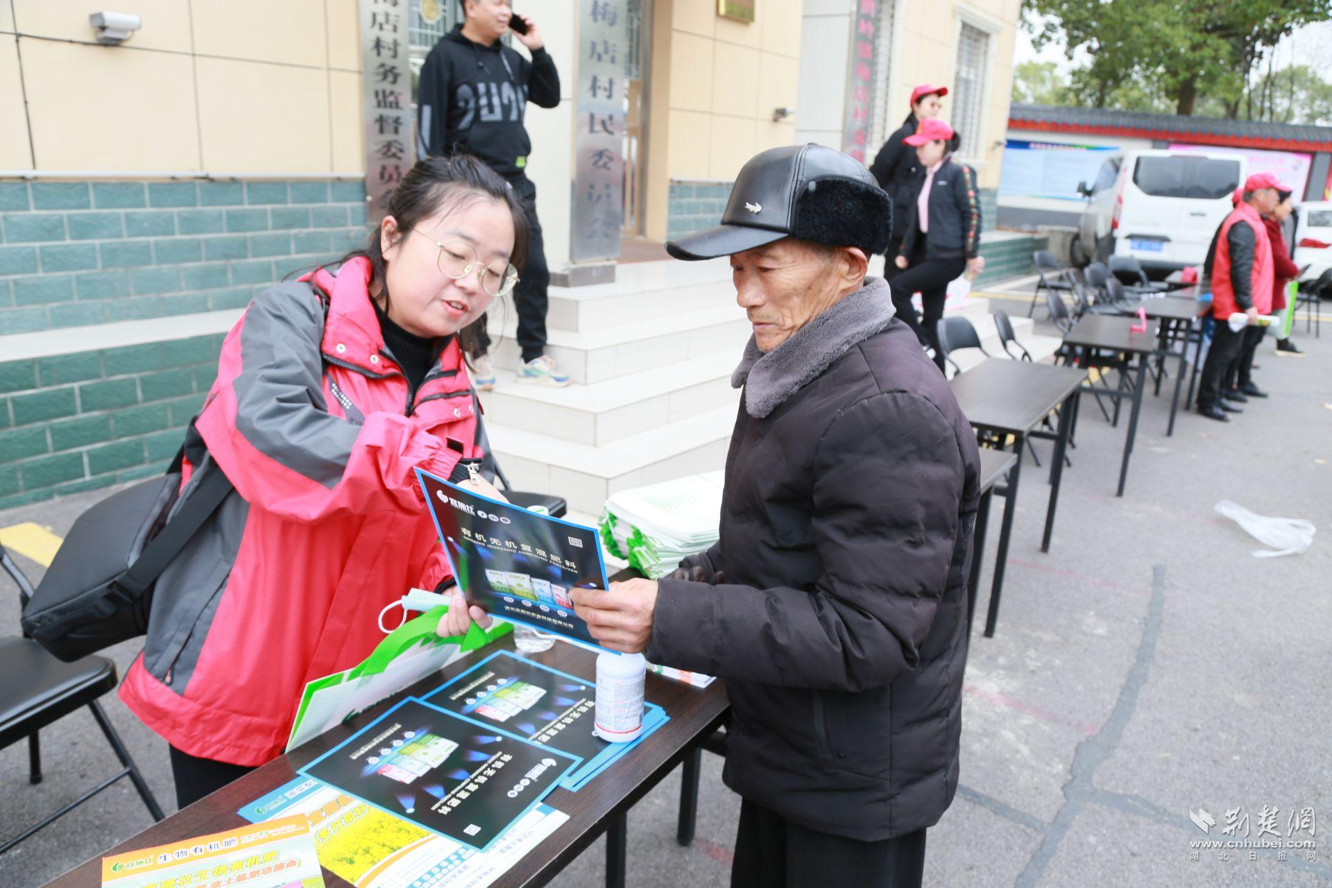 工作人员向农民朋友发放宣传资料。(通讯员供图)