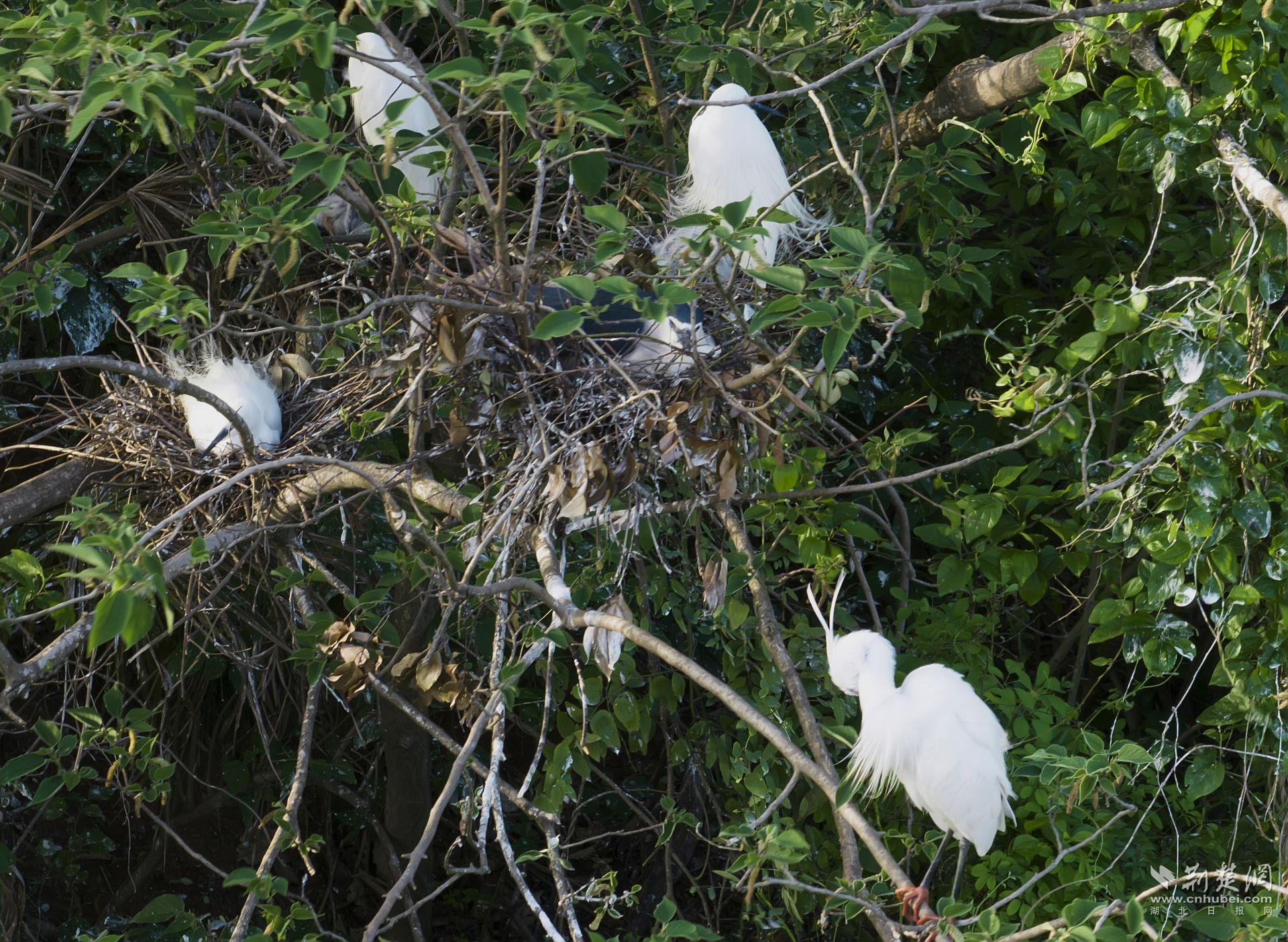 鹭鸟为群居鸟类,喜静,对生存环境要求非常严格。近年来,鸡头山村持续推进人居环境整治,生态环境越来越好,村头数百亩的连片鱼塘边,常年栖息着千余只鹭鸟。目前正是鹭鸟的繁殖期,大量鹭鸟在这里“生儿育女”,呈现出一派“鸟丁兴旺”的景象。