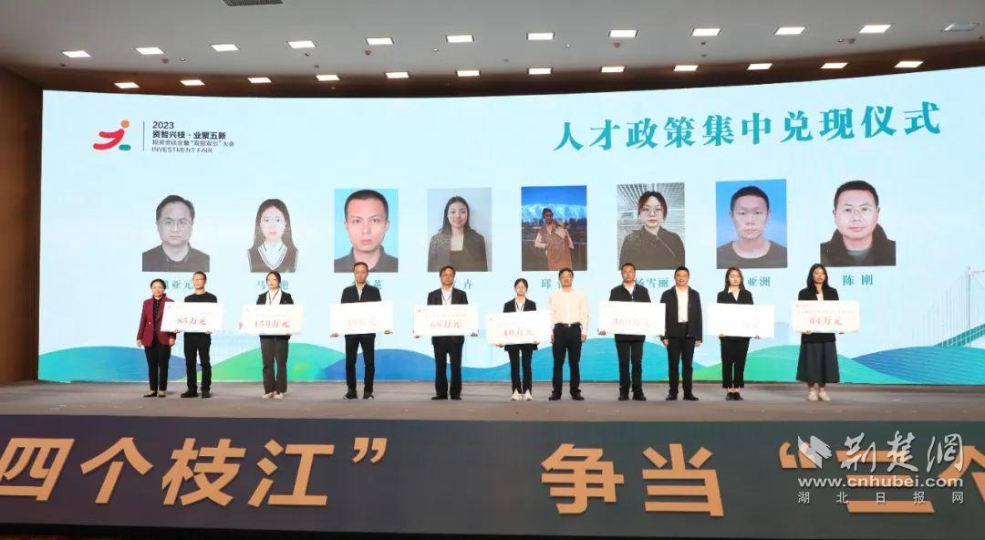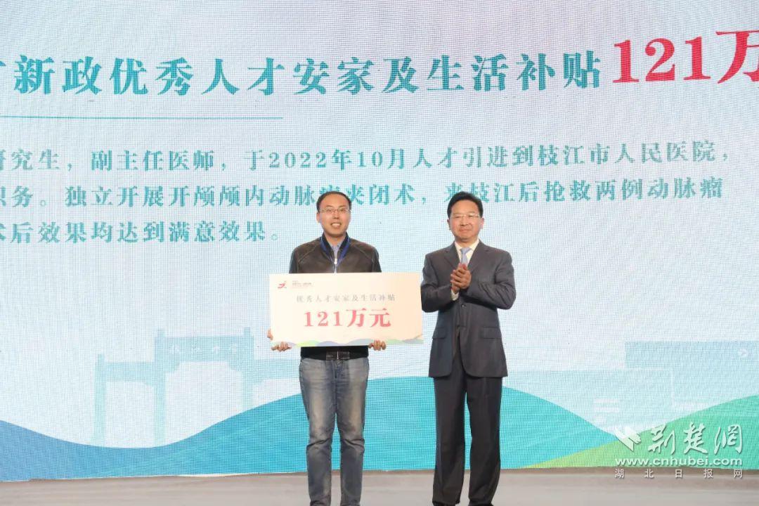 为投身枝江经济社会发展的团队和个人发放人才政策兑现资金。通讯员供图
