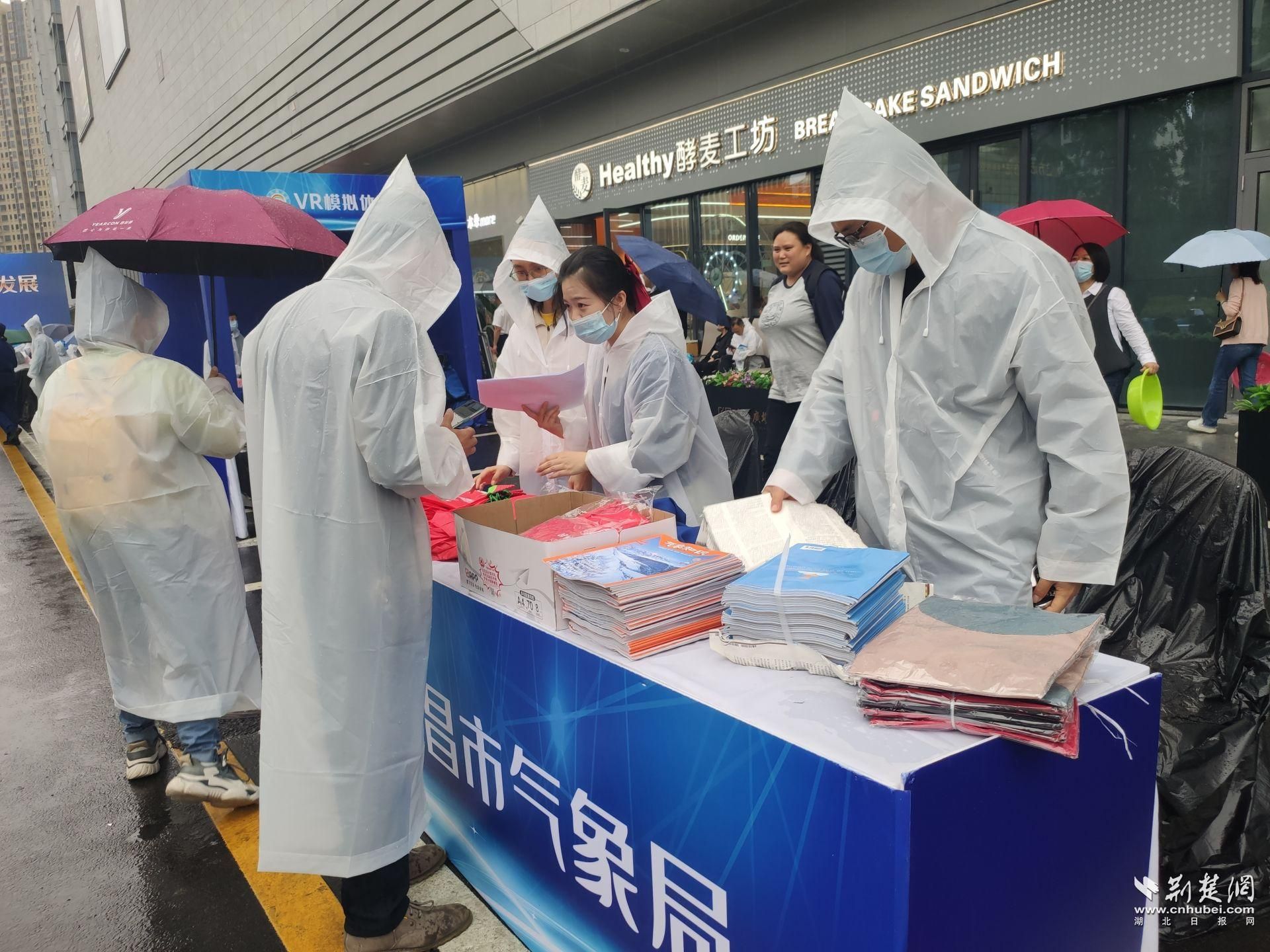 气象部门是防灾减灾宣传的重要部门。在宜昌市气象局的展台前,工作人员向市民发放了《气象知识》《湖北省气象灾害防御条例》等各种宣传资料,并现场举行防灾减灾知识有奖竞答比赛,深受市民欢迎。此外,该局专家还向群众重点介绍了雷电大风、冰雹、暴雨等灾害性天气应急避险知识,并现场教市民使用“宜昌气象”抖音号和“宜昌气象”微信公众号,以便及时获取天气预报和预警信息。