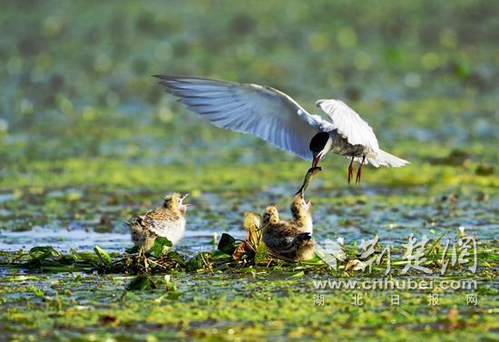 湖北金湖国家湿地公园成群鸟儿繁衍嬉戏。( 通讯员供图)