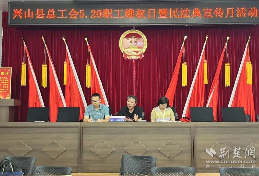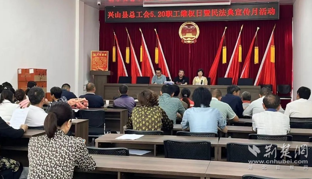 荆楚网(湖北日报网)讯(通讯员 韩兴媛)5月19日上午,兴山县总工会组织专班前往昭君镇昭君村居民委员会,联合昭君村工会开展5·20职工维权日活动暨民法典宣传月。