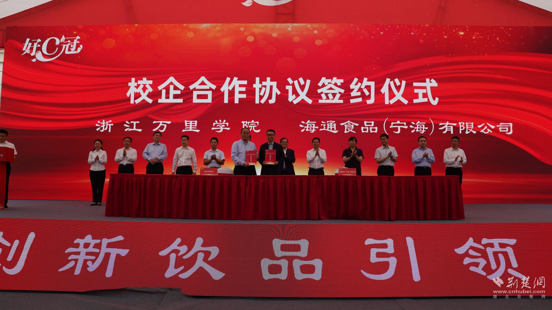 活动当天举行了华中农业大学研究生培训实践基地、三峡大学生物与制药学院湖北省研究生工作站揭牌仪式,海通罐头产业集团为聘请的科技专家颁发了聘书,并现场与华中农业大学、浙江万里学院、三峡大学签订校企合作协议。“校企合作将在技术方面为我们提供强有力的支撑。通过他们的赋能,相信未来我们产品的创新研发会有更大突破。”海通罐头产业集团常务副总、宜昌海通食品有限公司总经理王央苗对记者说。