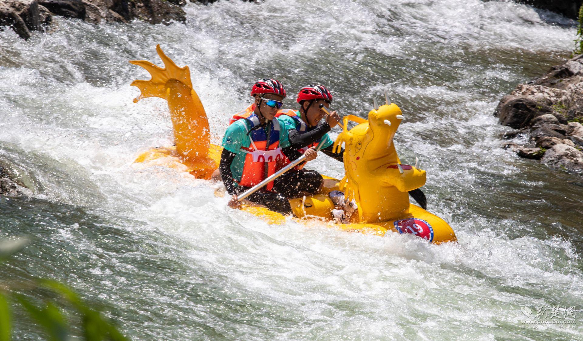 荆楚网 (湖北日报网) 讯 (记者唐姝亚 通讯员蔡亮 实习生涂思羽、郭京茜)6月10日,2023年中国宜昌朝天吼自然水域漂流大赛在湖北省宜昌市兴山县挥桨开赛,来自全球的10个国家的26支专业组运动员和2000多名漂流爱好者搏浪飞舟,竞速漂流。