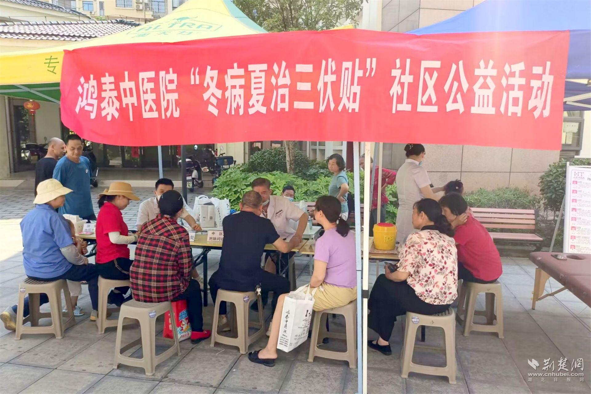 荆楚网(湖北日报网)讯(通讯员张艺)6月14日,宜昌市夷陵鸿泰中医院派出骨干医生,到该区东城试验区梅子垭村梅岭馨苑小区,开展“冬病夏治三伏贴”义诊公益活动,现场提供血压、血糖监测、中医把脉问诊、推拿艾灸等服务。当日上午,近百居民参加活动。
