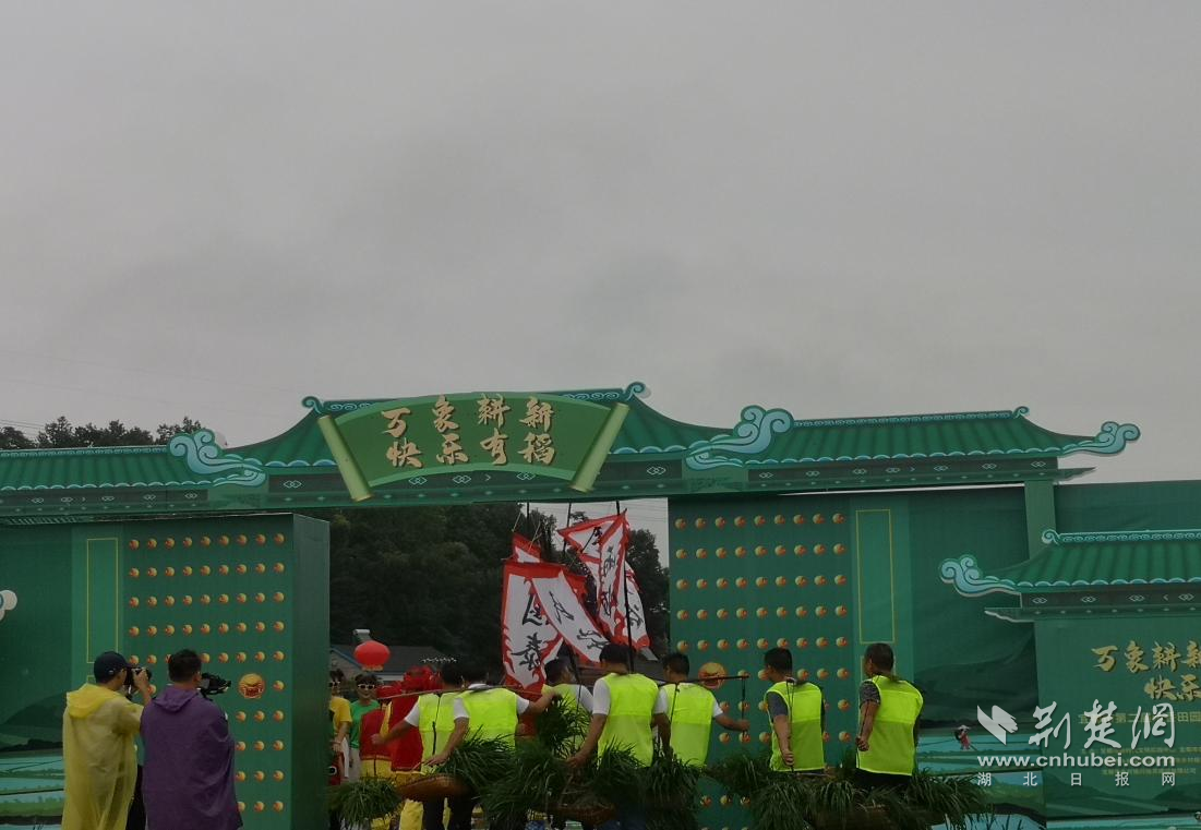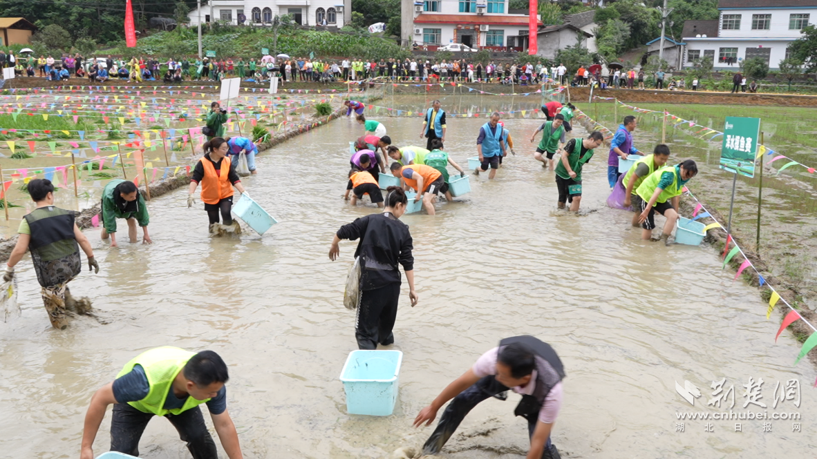 荆楚网(湖北日报网)讯(通讯员郑方芳、江传堃)万象“耕”新,快乐有“稻”。6月17日,宜都市第二届农耕文化插秧节在该市松木坪镇永丰广场拉开帷幕,数百名游客与当地农民群众共同见证了一年一度的“开秧门”仪式,并参与挑秧栽秧、浑水摸鱼、泥田拔河等趣味活动。