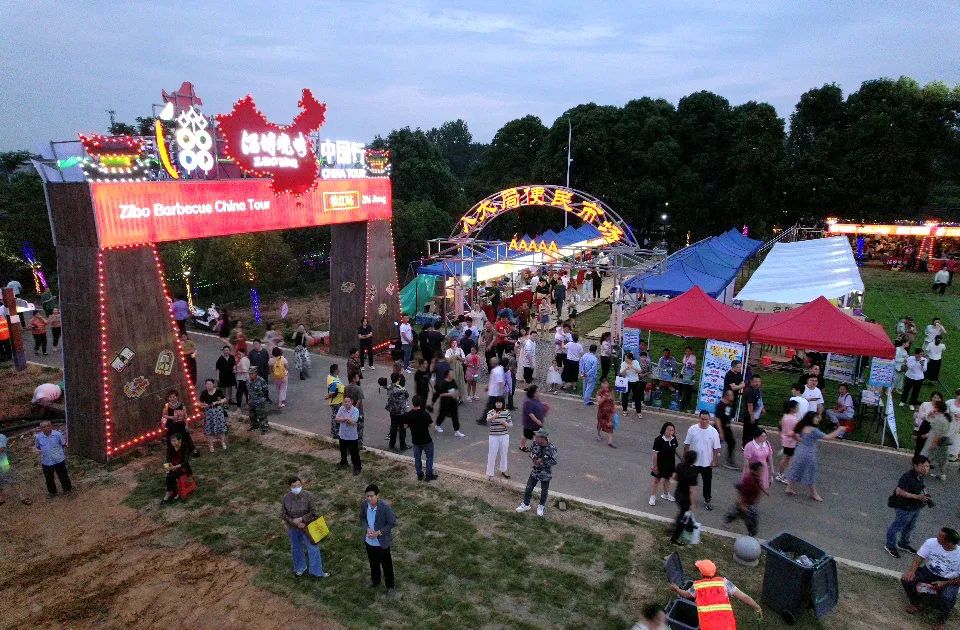 6月21日晚,“烟火枝江•趣玩一夏 ”乐享生活季暨董市烧烤美食节 在枝江市董市镇曹店村枫林月季园开幕。