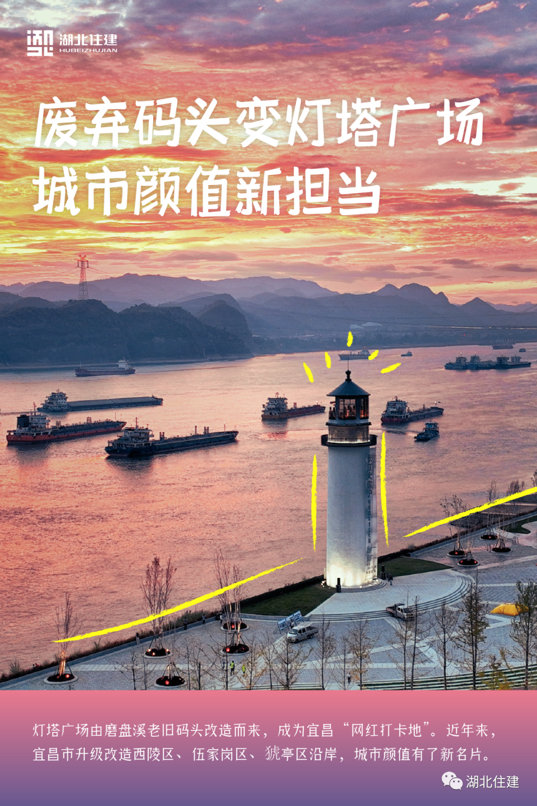 灯塔广场靓照不断刷屏朋友圈,这里已成为宜昌城市文化和精神的新地标。