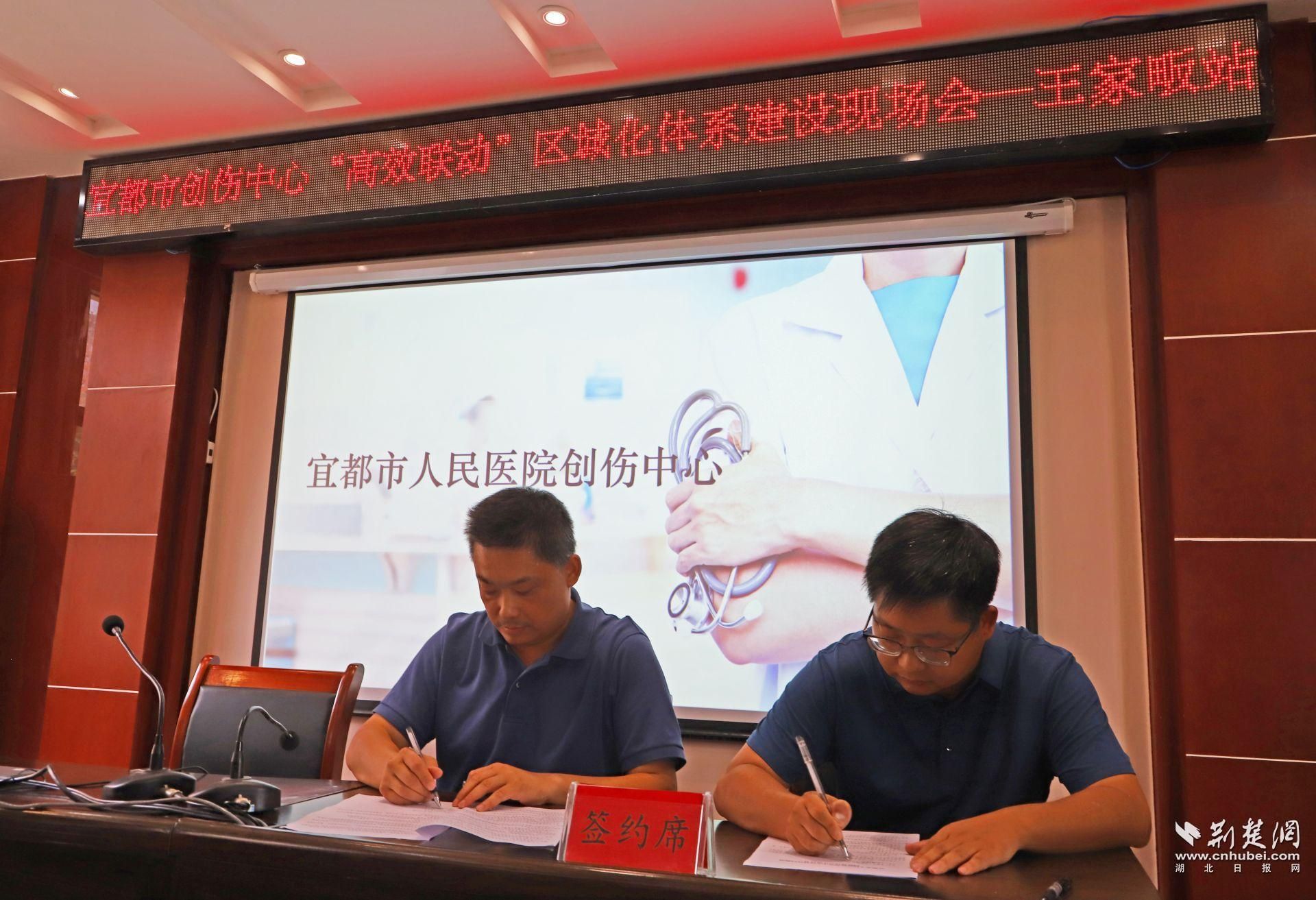 活动现场,宜都市人民医院与王家畈卫生院签定了创伤中心区域协同救治网络建设协议。