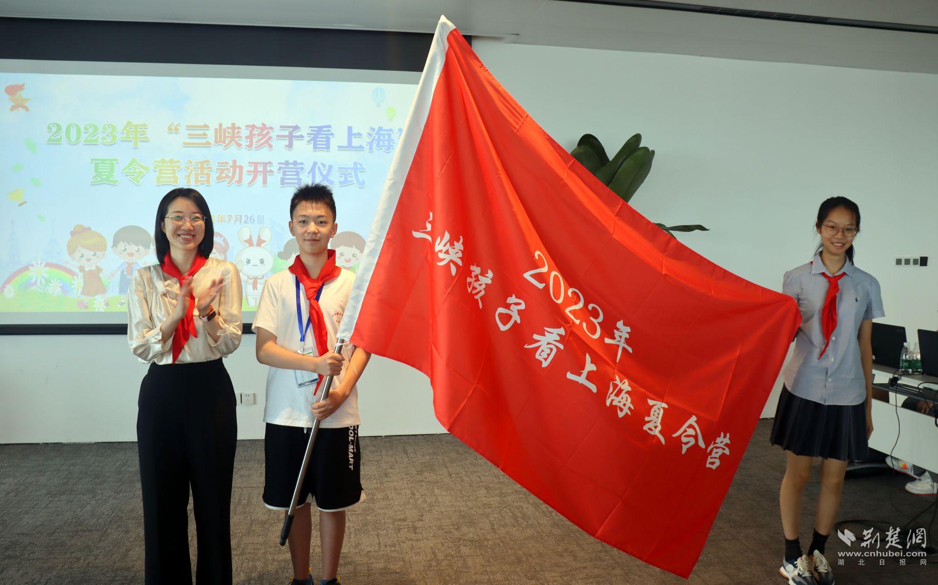荆楚网(湖北日报网)讯(通讯员李重庆、陈新峤)7月26日,宜昌市夷陵区2023“三峡孩子看上海”暨“生态小公民进静安”夏令营活动在上海静安区苏河湾中心开营。夷陵区30名“生态小公民”代表与静安区的孩子们牵手结对、互赠生态环保纪念礼物,倡议共当生态小公民,保护长江生态环境。静安区团委书记吴佳妮为夏令营授旗。