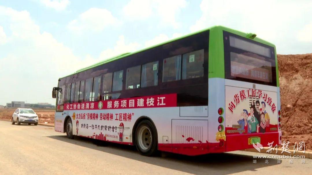 荆楚网(湖北日报网)讯(通讯员杨沛裕)炎炎夏日,高温酷暑。连日来,枝江市安捷交通将公交车开进姚家港化工园区项目工地,为现场施工工人们送去清凉。
