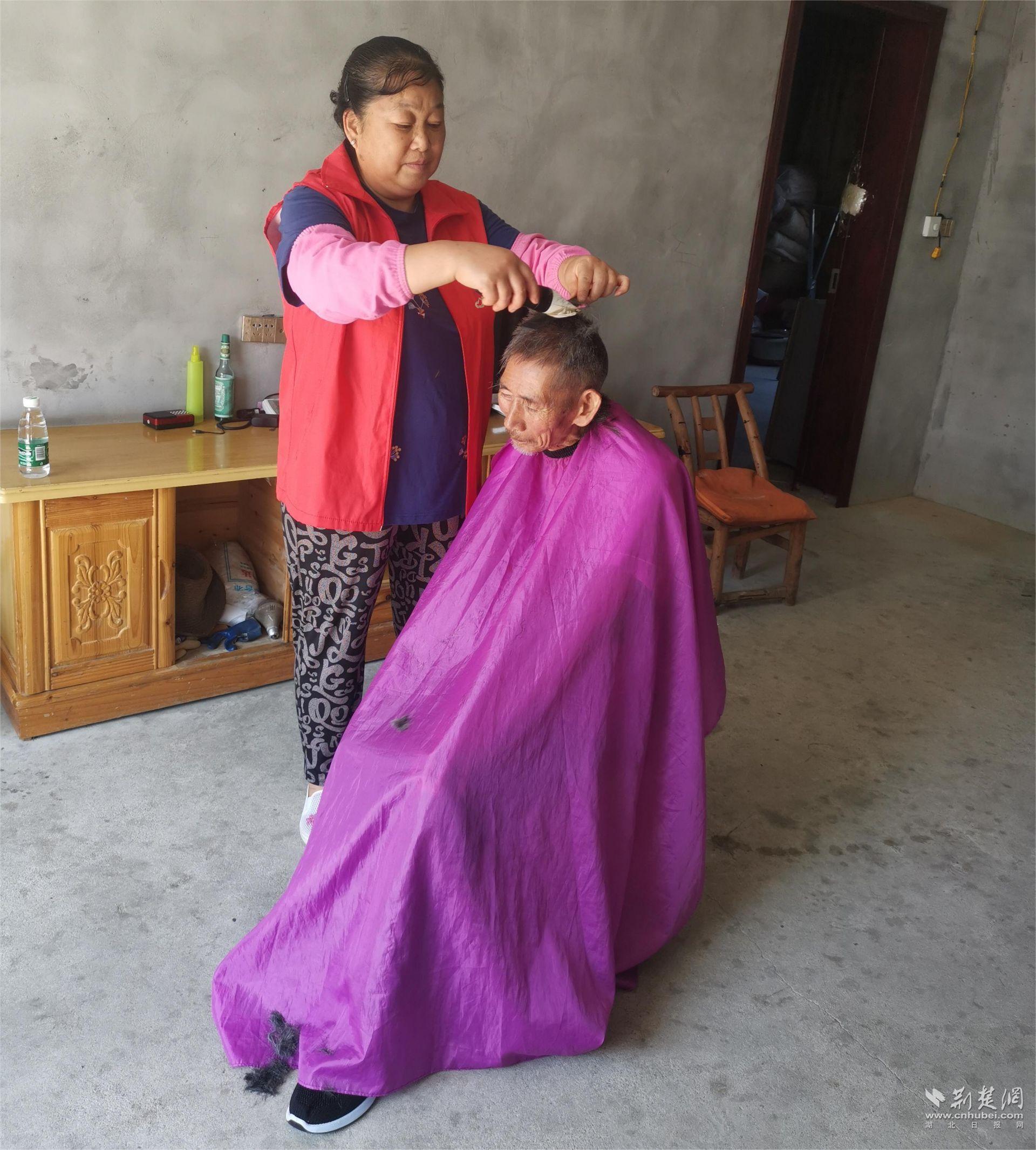 陈维香和屈家友老两口居住在山顶上,两老因身体,都行动不便,屈家友前段时间又中风了,视力受损,出趟门难上加难。儿子在外打工,无人帮忙,只得求助村干部。当天,王友平和村里的志愿者赶到屈家友家里,帮老人把头发收拾得清清爽爽。
