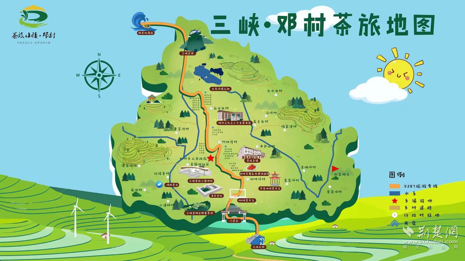 纳凉季开幕仪式现场发布了《三峡·邓村茶旅地图》。该地图是邓村首张旅游向导地图,不仅为前来邓村旅游纳凉的游客朋友们提供了“去哪玩”的地图指引,更是邓村茶旅产业的一张地理名片,标志着邓村旅游格局迈向集群化、邓村旅游服务逐步专业化。地图以三峡茶谷公园为核心区,以宜(昌)大(老岭)路为主轴,沿线收录并标注了门景区、999观景平台、萧氏茶坊、茶旅古镇、茶栖谷野奢营地、三峡茶旅小镇、九上二十五居民宿带、大老岭国家森岭公园、三峡云顶等旅游节点。