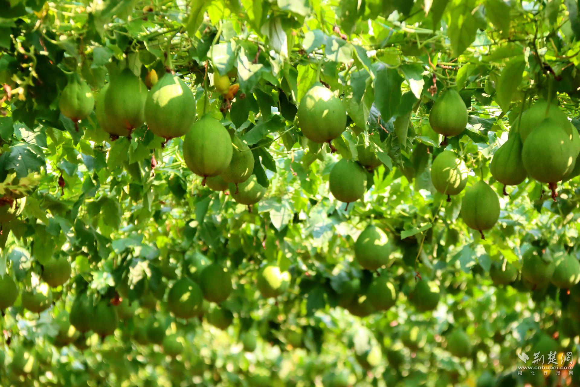在五岭村瓜蒌基地,一个个绿油油的瓜蒌挂满了藤蔓,个个体态饱满,长势喜人。立秋时节,正是瓜蒌成熟的季节,当地在家的村民纷纷来到基地打工。
