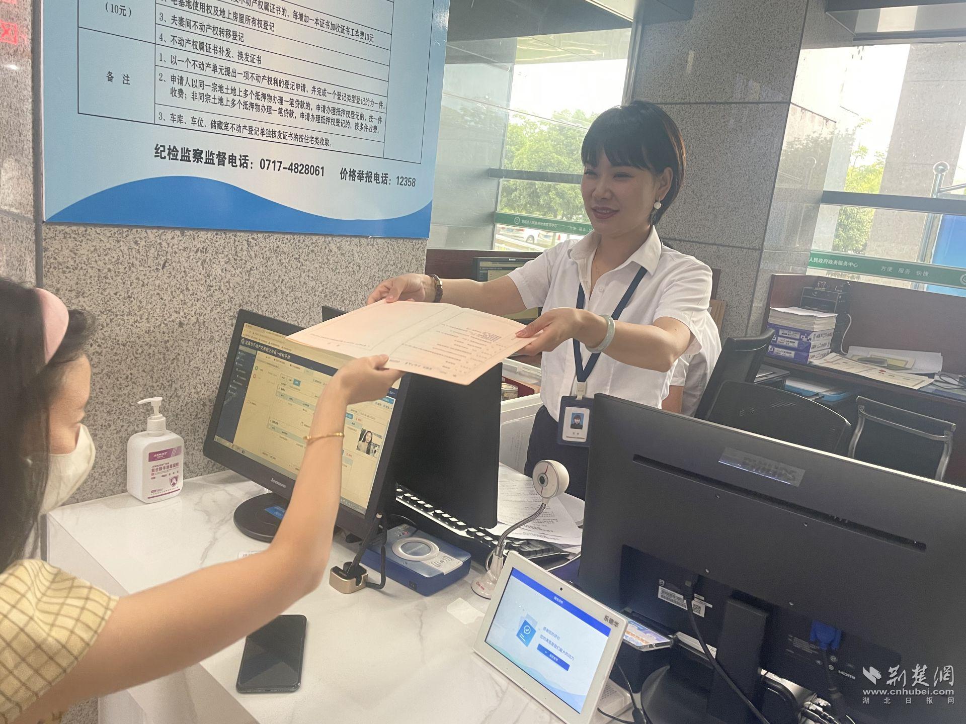 荆楚网(湖北日报网)讯(通讯员张亚丽、张青)“不用提前自己筹钱还清贷款,就把房子顺利地卖出去了,办事程序少,拿证速度快,真的很给力。”8月18日,宜都市民薛女士将自己的房子通过“带押过户”形式卖给了陈女士,赶上了宜都“带押过户”改革的“首班车”。