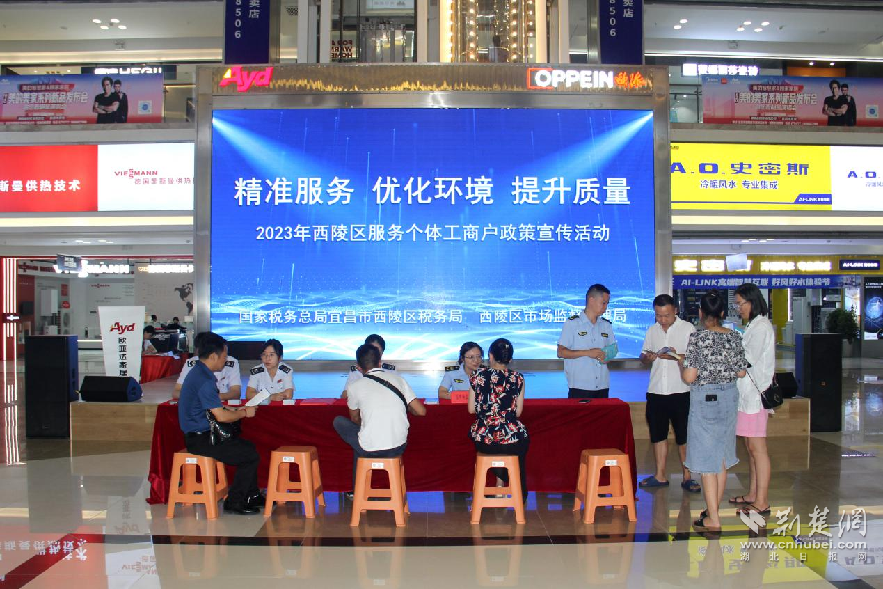 荆楚网(湖北日报网)讯(通讯员熊雄、王瑶)8月21日,宜昌市西陵区税务局联合西陵区市场监督管理局,深入该区华祥商圈,聚焦“精准服务 优化环境 提升质量”主题,向个体工商户宣传相关政策,助力个体户的经营活动。
