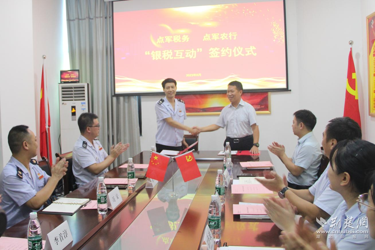 8月25日,宜昌市点军区税务局、中国农业银行三峡点军支行共同签订“银税互动”部门协作机制合作书。合作书规定,双方将共同在协作机制下,深入推进银税互动各项活动内容,共同为点军区AB级纳税人提供具有针对性、高效性的税银产品,及时为中小微企业提供贷款服务,同时互借平台,充分利用办税服务厅和银行网点,为双方最新政策套餐和产品推广提供更大的服务平台,畅通纳税人办税渠道,拓宽办税途径。