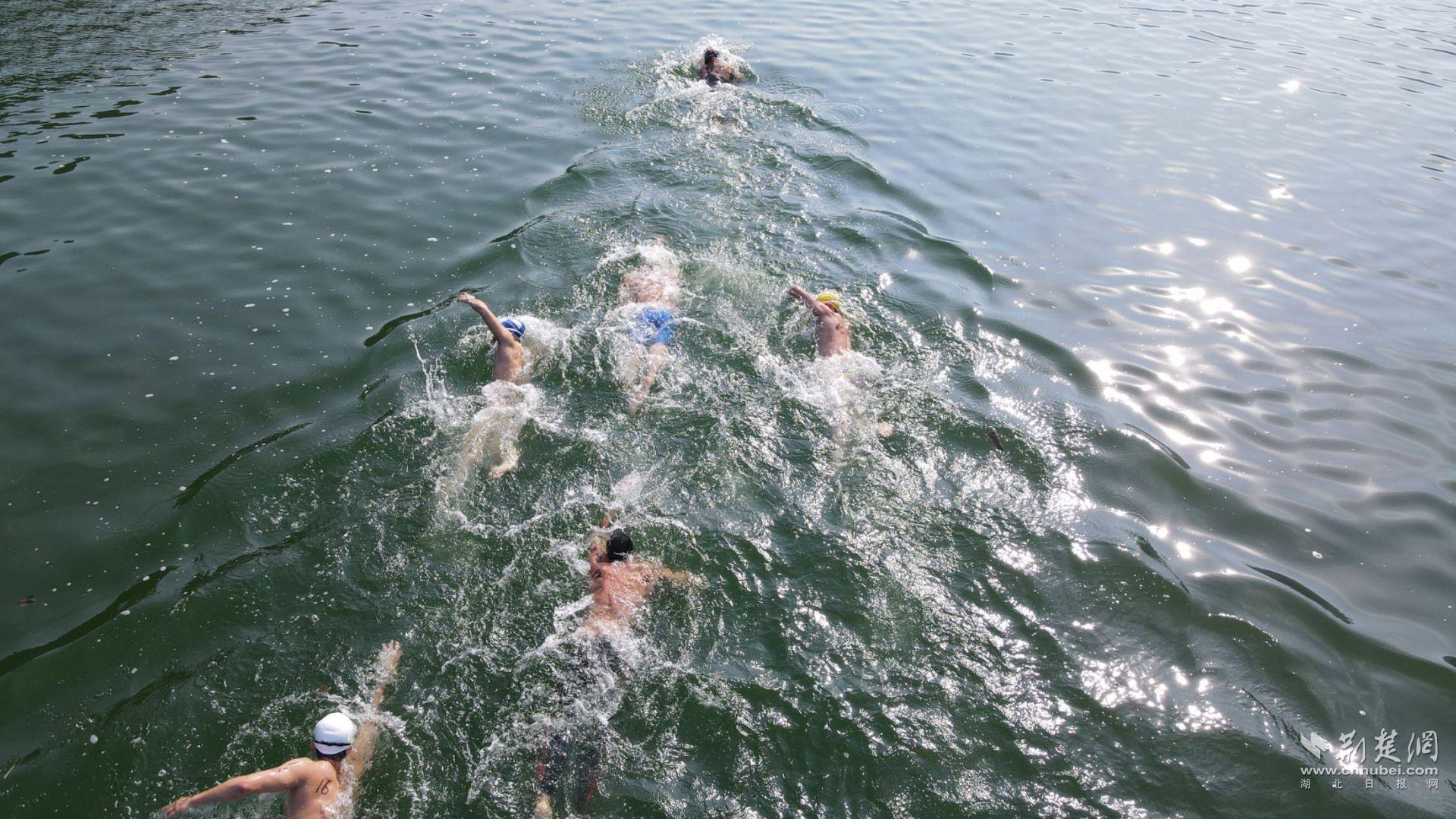 当日上午9时,随着一声令下,做好准备的运动员们纷纷跃入水中。大家争先恐后,奋勇向前,而清江沿岸观众也积极为运动员呐喊助威。