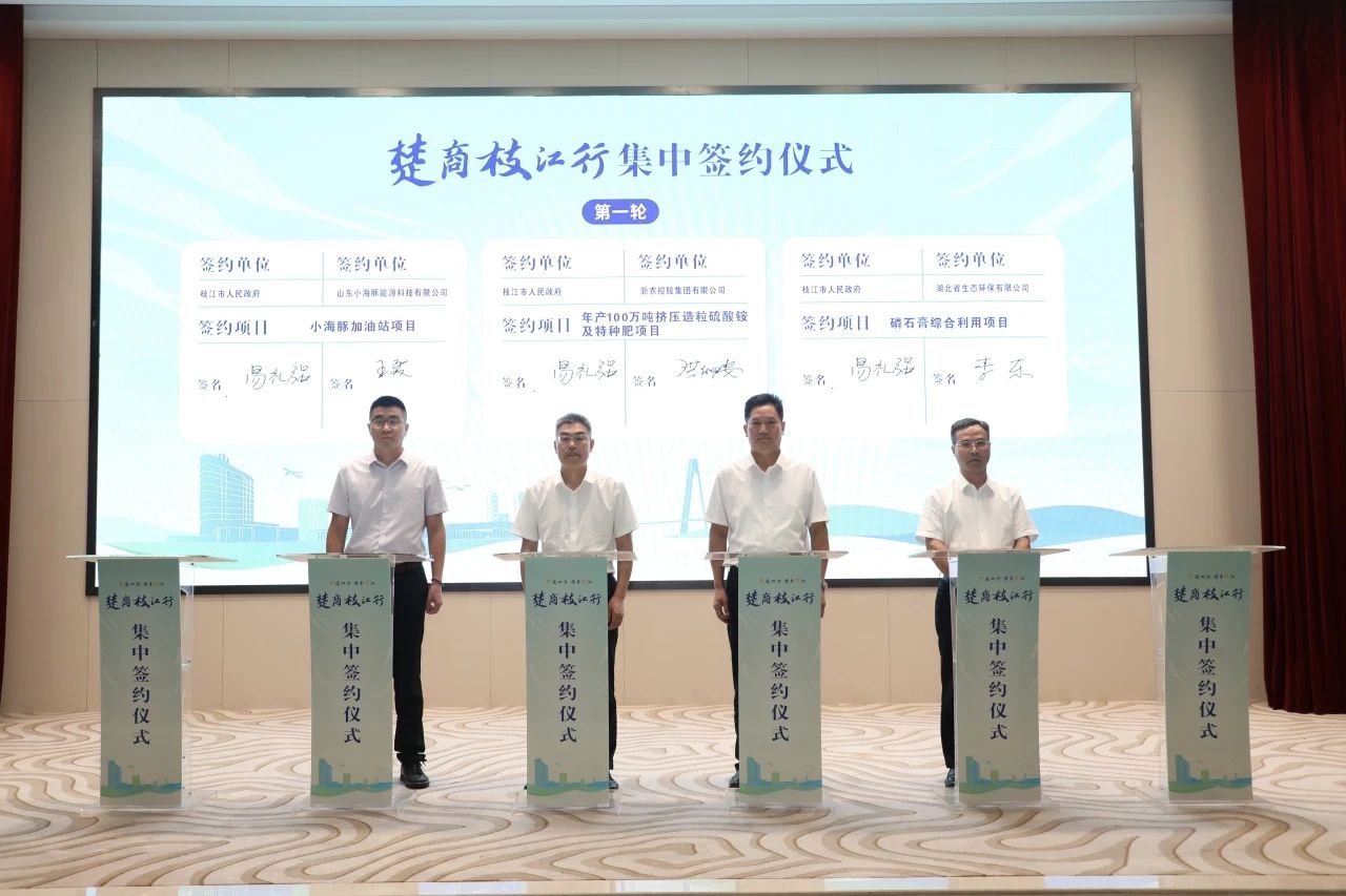 此次现场签约包括浙农控股集团有限公司签订年产100万吨挤压造粒硫酸铵及特种肥项目、湖北省生态环保有限公司磷石膏综合利用项目等12个项目,涵盖新能源、新材料、新信息智能制造、新生态绿色食品、新电商“五新”产业领域,投资规模大、发展后劲强、带动潜力足,必将为枝江能级提升、跨越赶超提供硬核支撑。