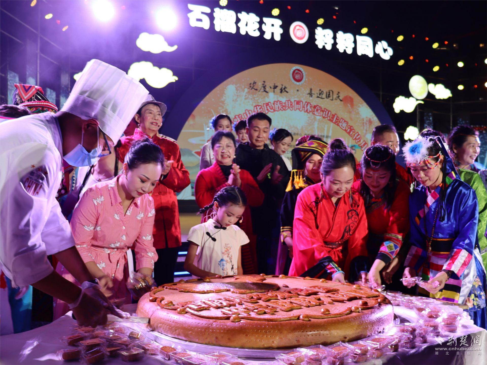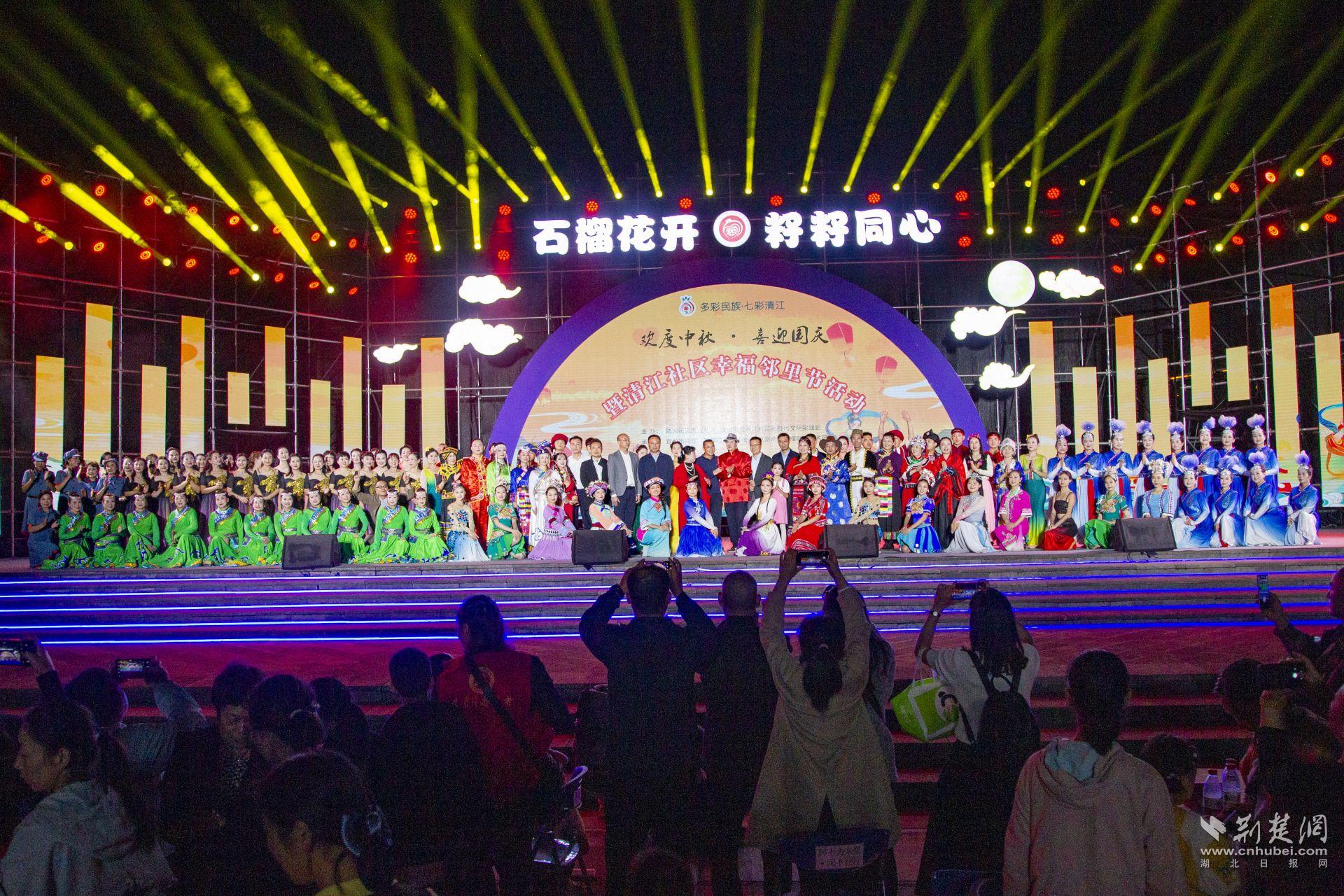 荆楚网(湖北日报网)讯(通讯员鲁玉梅)9月24日,“石榴花开迎国庆 籽籽同心庆中秋”文艺晚会暨宜都市铸牢中华民族共同体意识主题宣传月活动在宜都市清江广场举行。当晚,2000余人来到现场。宜都市委副书记、政法委书记龙顶泉,市委常委、统战部部长杨超,副市长严军出席活动。