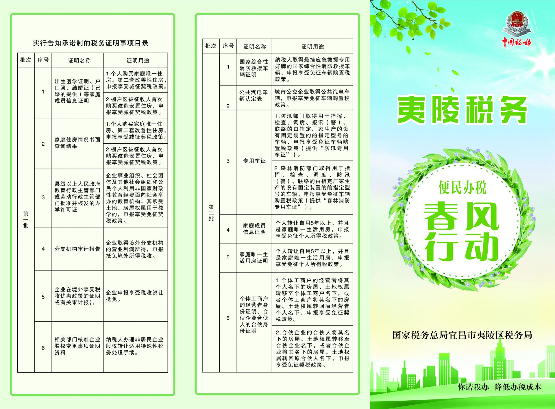 今年,宜昌市夷陵区税务部门在全省率先试点“‘你诺我办’降低办税成本”优化营商环境先行区改革事项,推行税务证明事项告知承诺制服务,将“多项证明”变为“一纸承诺”,最大限度减证便民。