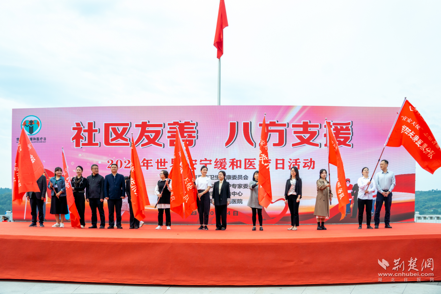 为更好动员和组织社会各界力量参与爱老、敬老、护老活动,吸引更多的社会力量参与到安宁疗护志愿服务中来,让每位有需要的老年人都能得到温馨、体贴的志愿服务,宜昌市卫健委成立了“宜安天使”志愿服务队。活动现场,有关领导为“宜安天使”志愿服务队授予队旗。