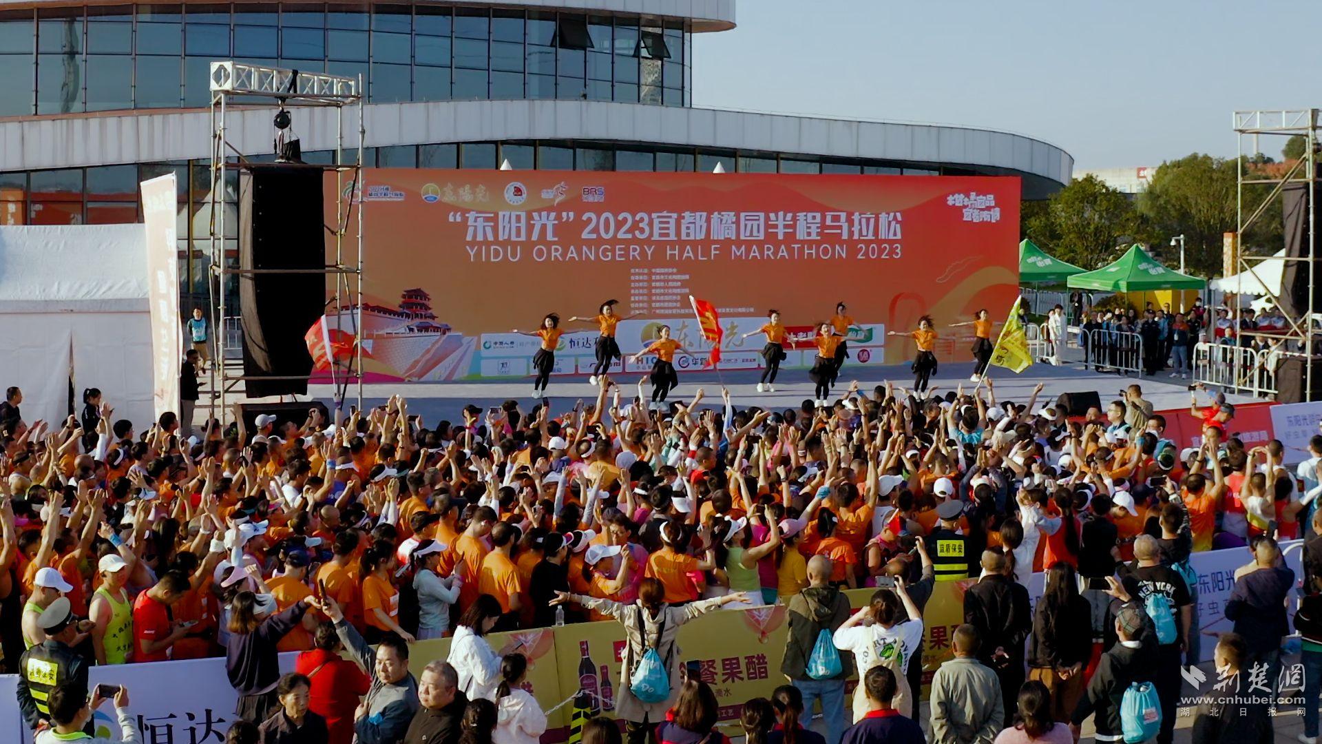 荆楚网(湖北日报网)讯(记者唐姝亚 通讯员黎文来、朱灿义 实习生李莉)10月15日上午8:00,随着一声发令枪响,2023宜都橘园半程马拉松在宜都市国家柑橘农业公园文化广场燃情开跑。来自全国各地的6000余名跑友展开激烈角逐,2万余名观众的呐喊助威声此起彼伏,共赴这场“橘色”运动盛宴。