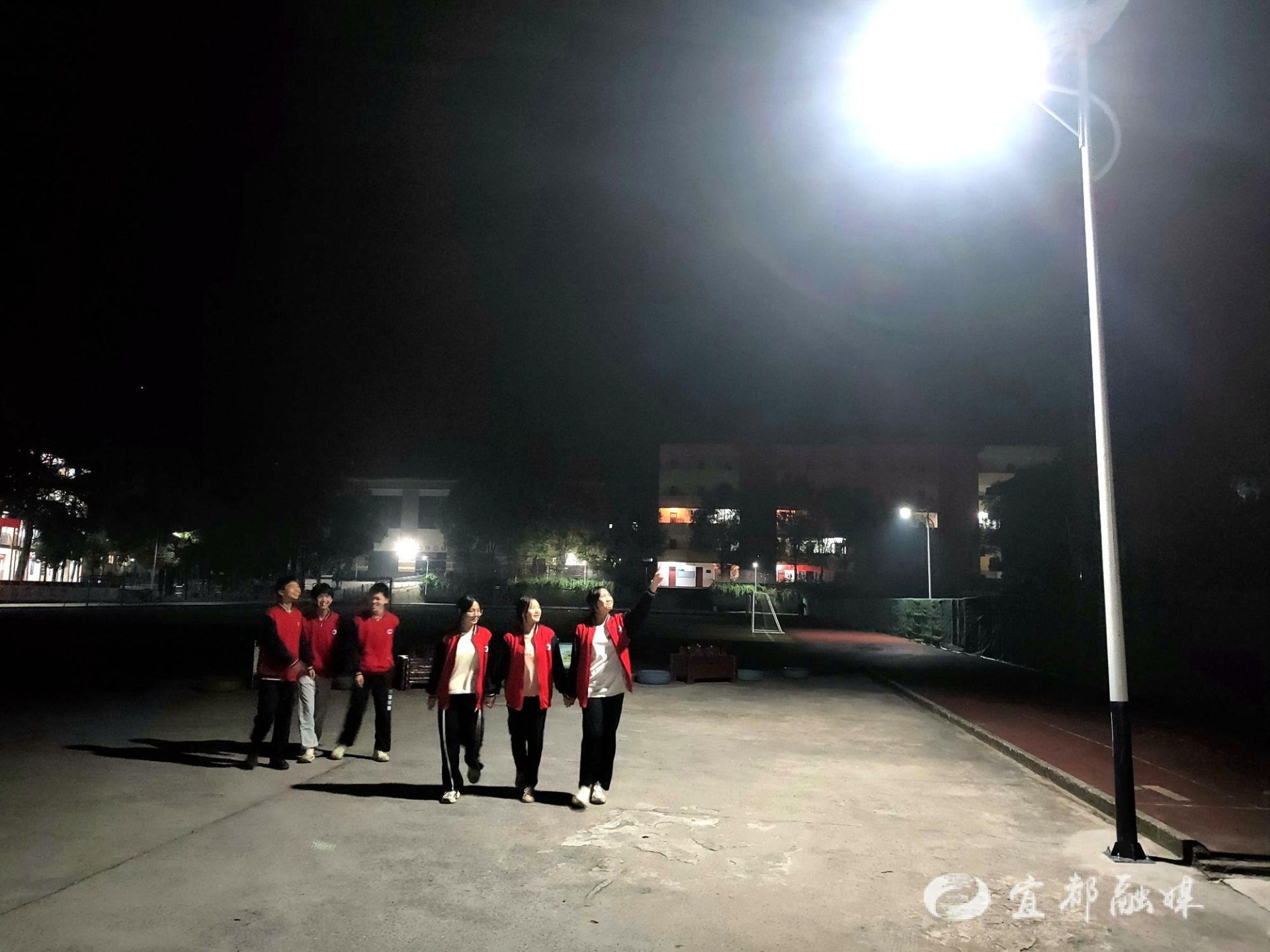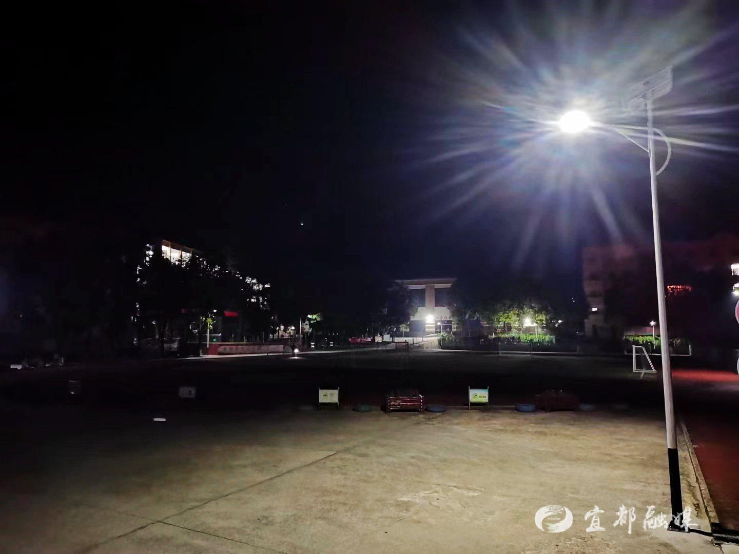 “哎,有新灯了!下课喊他们打会球再走!”10月16日晚,落日余晖逐渐消退,宜都市松木坪镇中小学初中部学生陆续从宿舍、食堂返回教室,新加装的太阳能路灯齐刷刷地亮了起来,引起一阵阵惊呼。