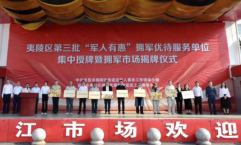 揭牌仪式上,夷陵区退役军人事务局为第三批“军人有惠”拥军优待服务单位代表授牌,并为首批6位“军人有惠”优待服务体验官颁发聘书。