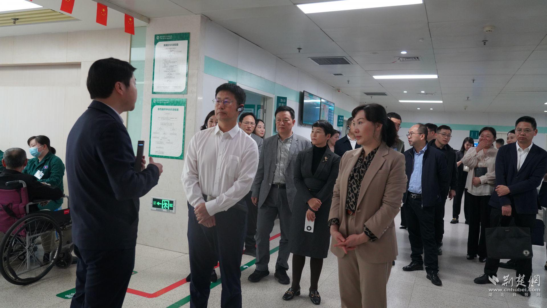 调研组在宜昌市中心人民医院伍家岗院区查看医保服务工作。