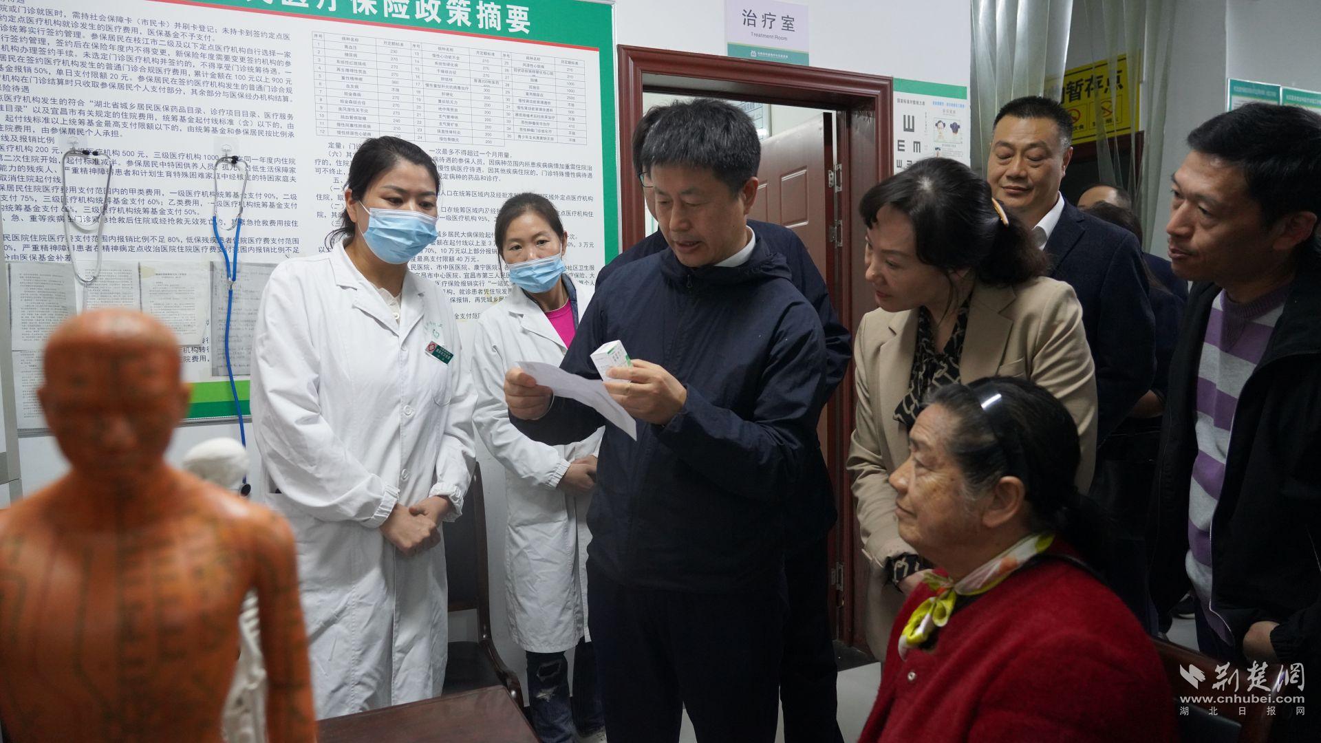 在枝江市拽车社区卫生服务中心,调研组询问看病报销情况。