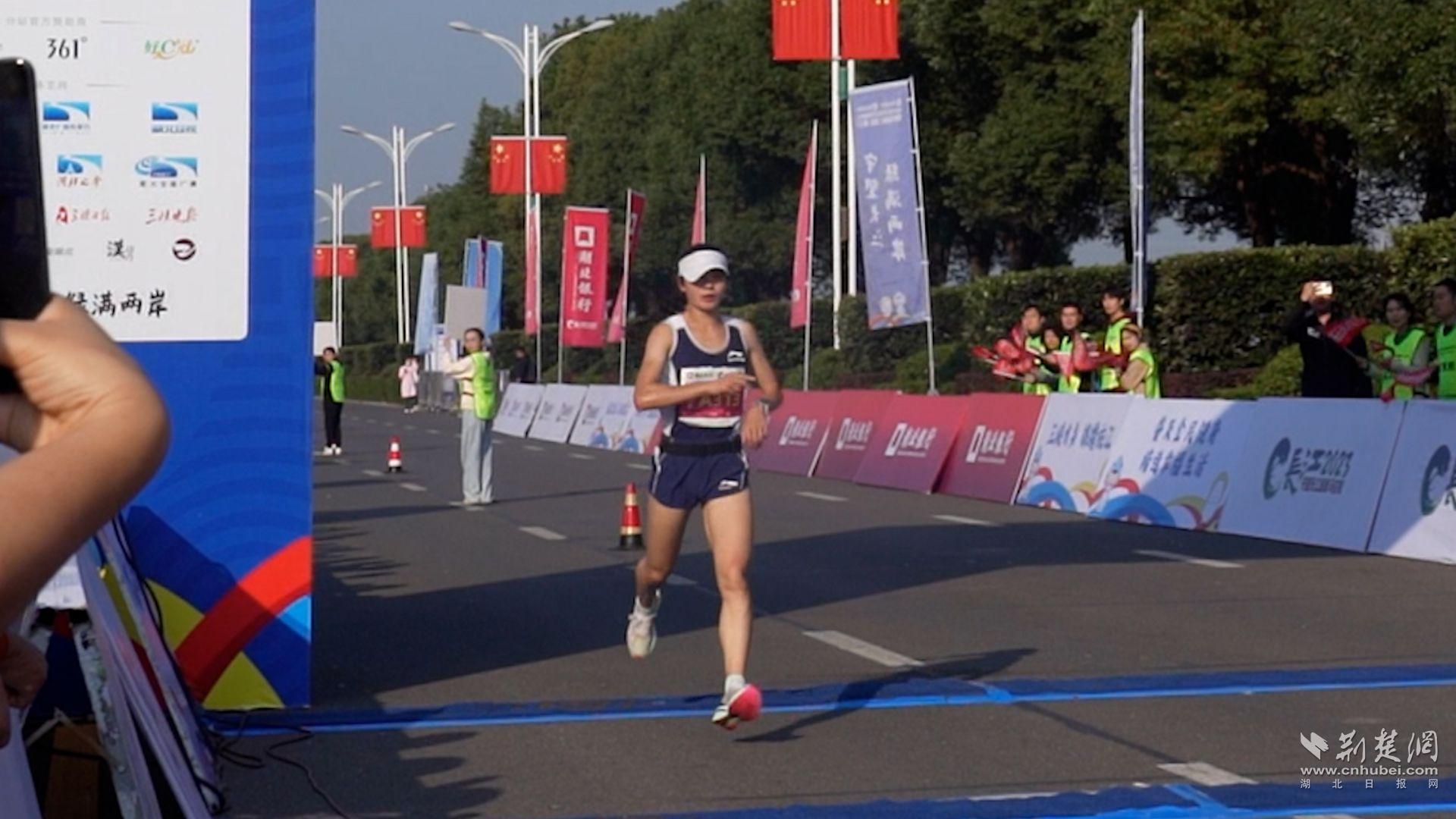 荆州选手沈妮跨过终点线。(唐姝亚 摄)