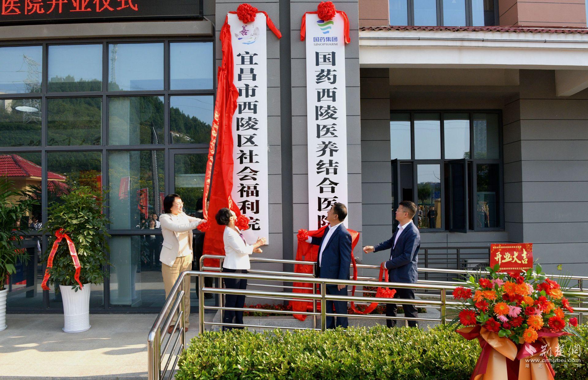 荆楚网(湖北日报网)讯(通讯员李正超、冉李茂佳)10月23日,宜昌市西陵区社会福利院暨国药西陵医养结合医院正式揭牌运营。宜昌市人民政府副市长张琼,国药医疗党委书记、董事长杨军,宜昌市西陵区委书记任蔚,国药葛洲坝(宜昌)医院管理有限公司董事长、党委书记王翔宇共同为西陵区社会福利院暨国药西陵医养结合医院揭牌。