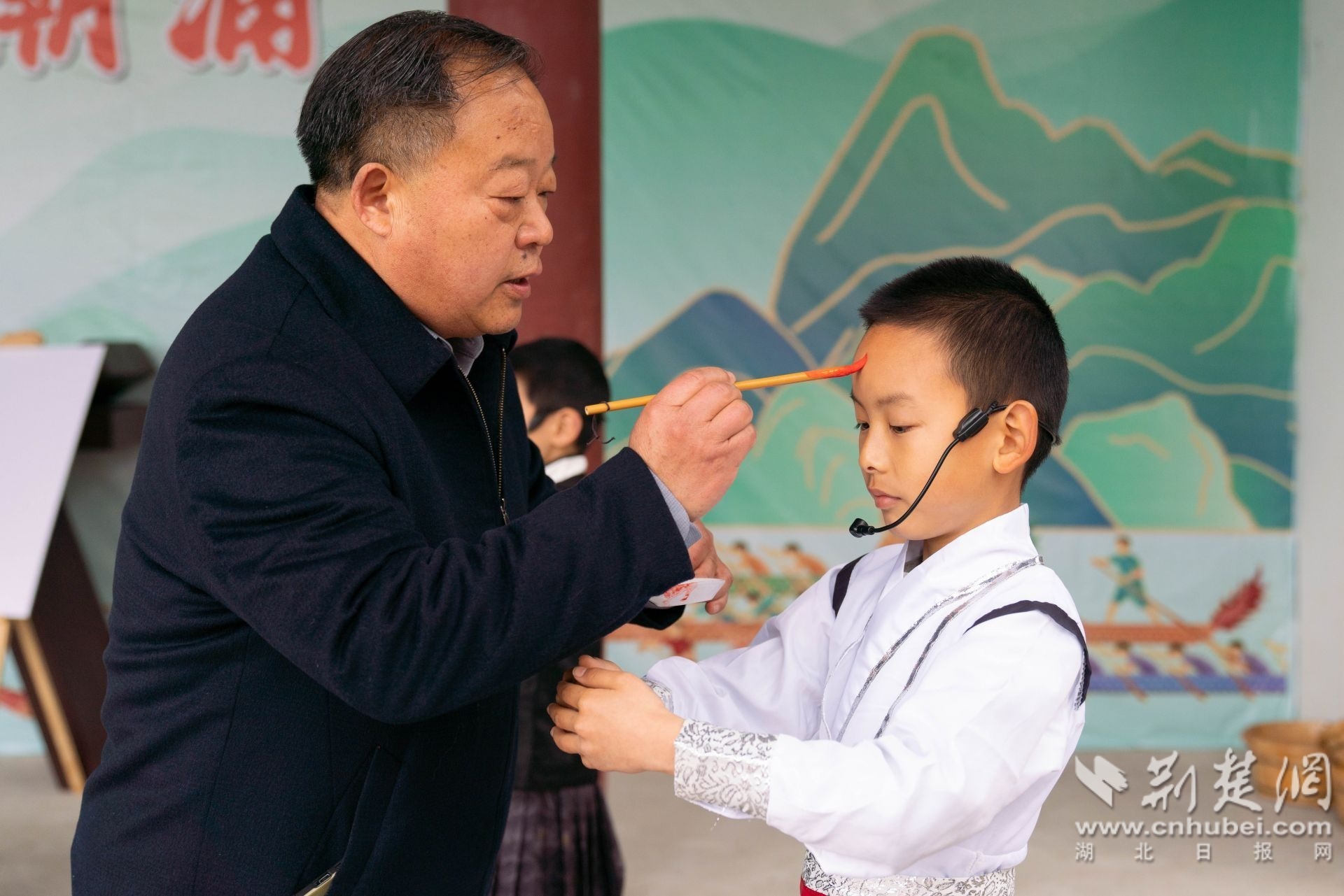 “盥洗净手、端正衣冠、礼拜诗祖……”8名孩童身着楚服,在屈原第68代孙屈家明的引导下完成开笔礼。朱砂轻点额间,稚嫩的诵读声回荡:“路漫漫其修远兮,吾将上下而求索……”这一传承千年的启蒙礼,以仪式感唤醒文化基因,让崇文尚德的种子扎根童心。
