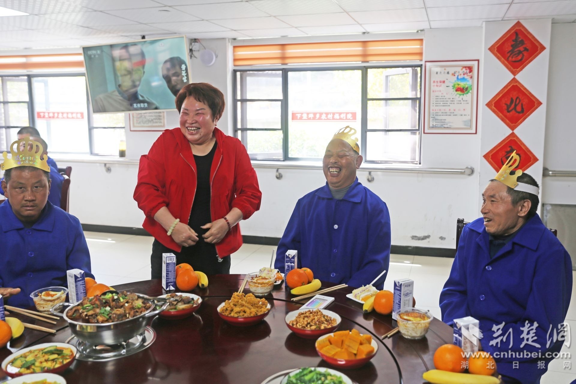 荆楚网(湖北日报网)讯(记者闻玉强 通讯员张国荣、刘一鸣)4月8日,宜昌市夷陵区下堡坪乡福利院的餐厅内暖意融融,9位头戴寿星帽的老人围坐在大圆桌前,晶莹剔透的水果蛋糕与热气腾腾的长寿面交相辉映,这是院长鲁自鹏为老人们操办的集体生日会。