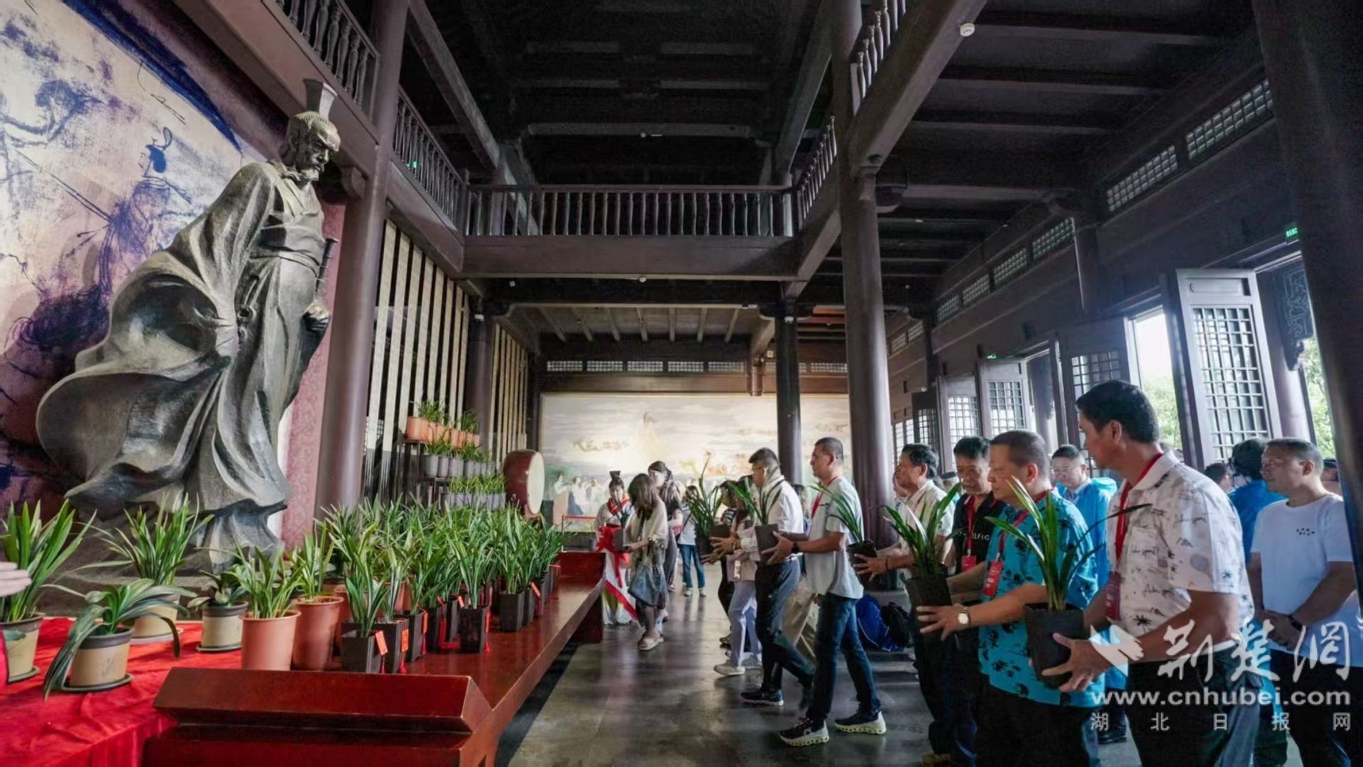 次日,台湾嘉宾受邀参加“我们的节日·端午”主题文化活动启动仪式,台湾屈氏后裔屈庭辉作为两岸交流的代表上台分享新时代屈原文化传承与文明实践,讲述两岸同胞交流的深厚情谊。随后,台湾嘉宾参观了屈原故里文化园海峡两岸交流基地,瞻仰屈原铜像、领略屈原风采,依古礼祭奠屈祖、敬献兰草。在海峡两岸交流基地展厅,众人浏览宜台两地交流活动的光影瞬间,重温共同的文化记忆,坚定传承屈原精神、深化交流交往的信念,为“两岸一家亲”写下生动注脚。