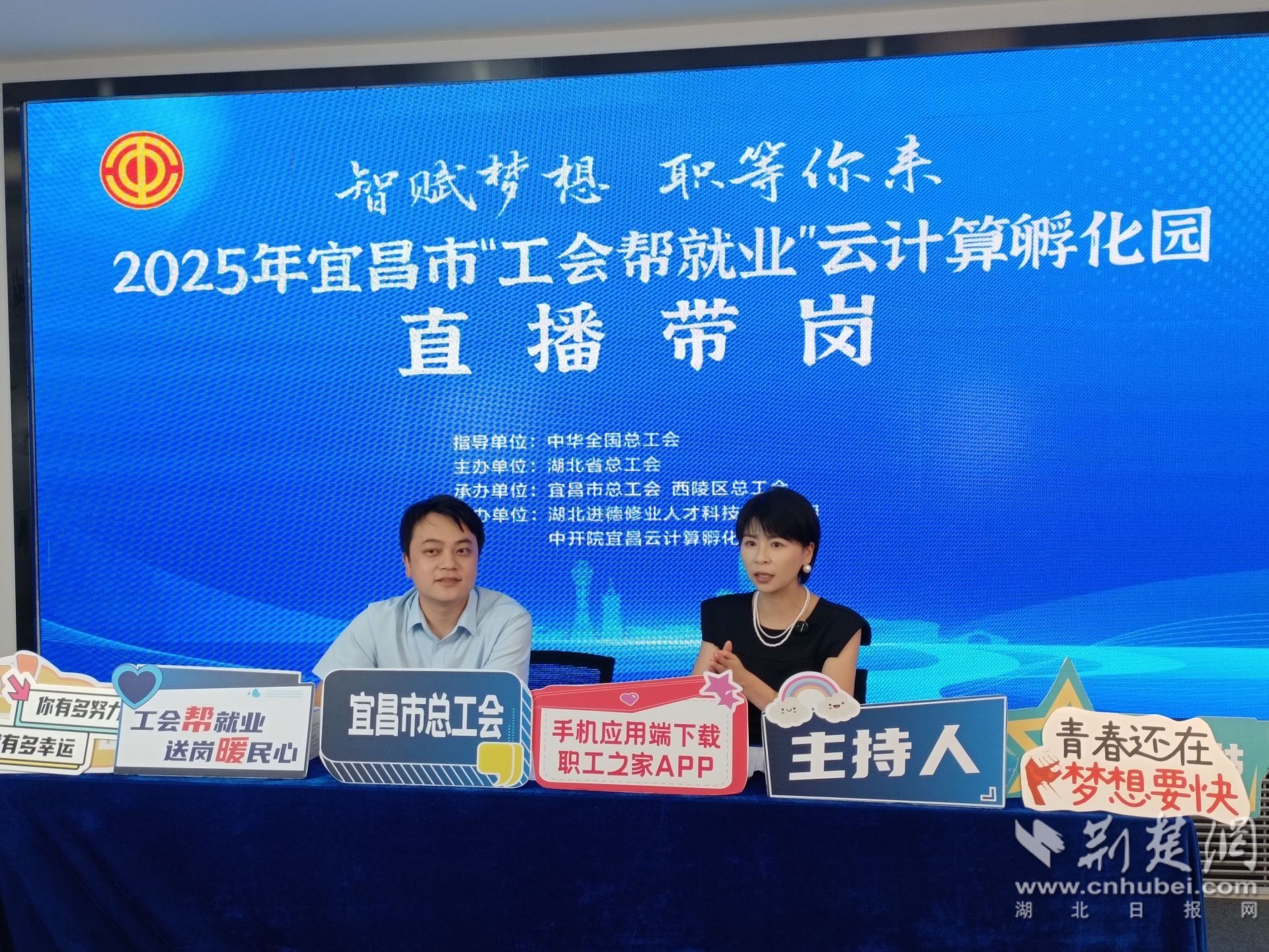 荆楚网(湖北日报网)讯(记者闻玉强 通讯员李娟娟、张开妍)9月5日,2025年宜昌市“工会帮就业”系列活动之云计算孵化园专场直播带岗活动成功举办。本次活动以“智赋梦想 ‘职’等你来”为主题,依托“线上沉浸式体验+企业直荐”创新模式,高效对接用工企业与求职群体,全面展现工会在稳就业、促发展中的桥梁作用和责任担当。