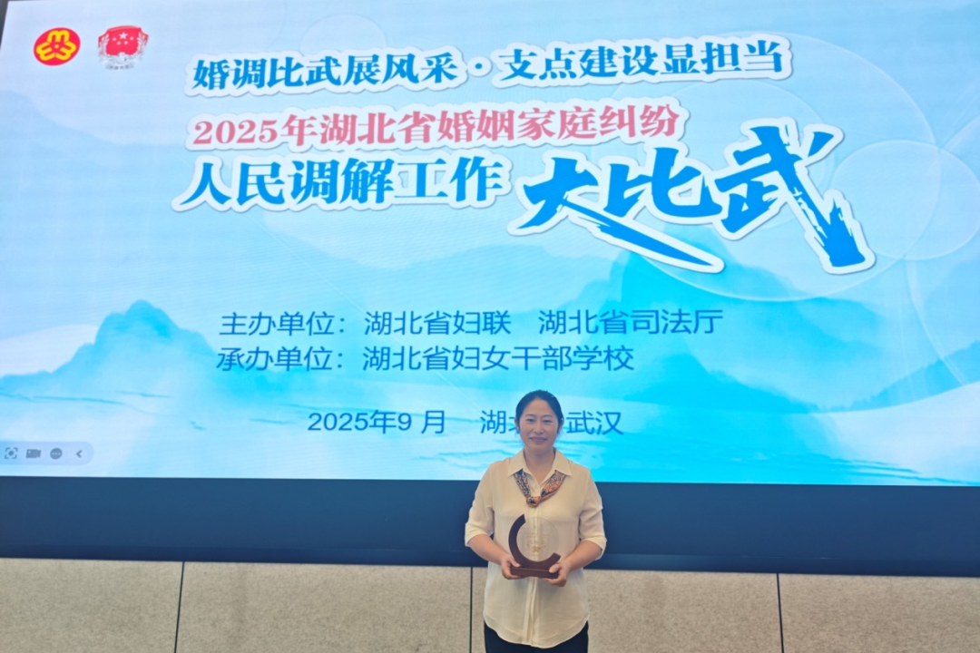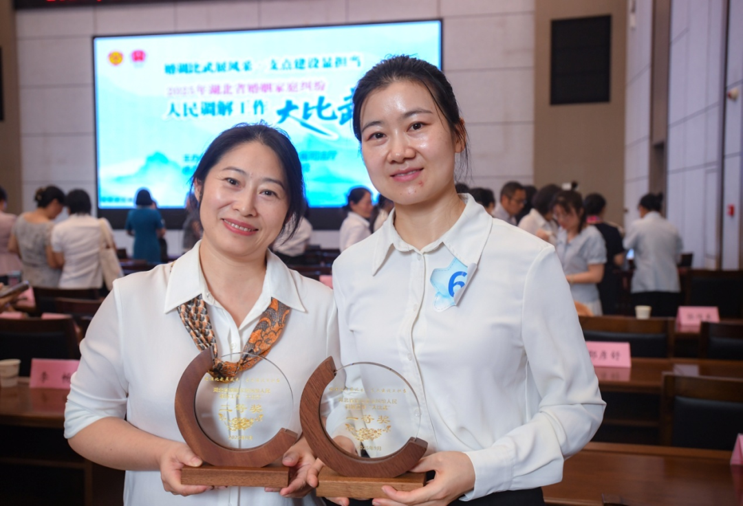 宜昌市枝江市问安镇人民调解委员会调解员黄丹、宜昌市夷陵区家调委主任易海燕分别斩获一等奖、二等奖。