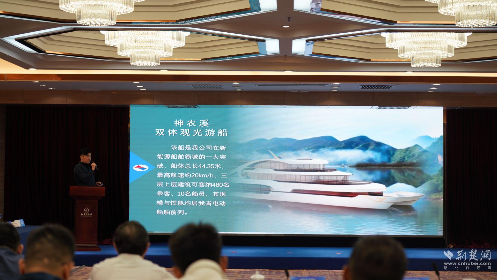 湖北中南鹏力海洋探测系统工程有限公司副总经理宋晟英作新能源标准船型推介。(税浪 摄)