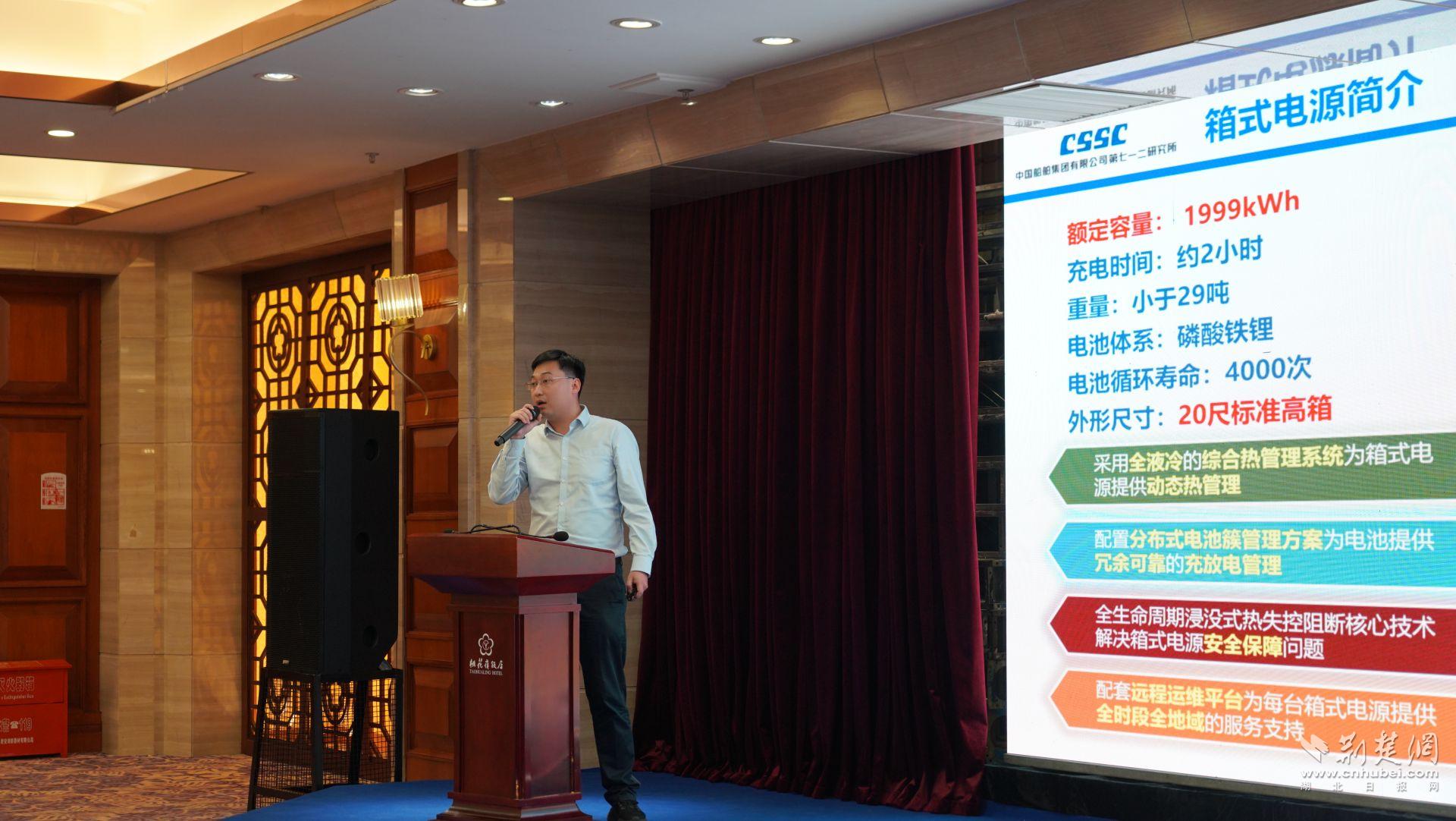 中国船舶集团有限公司第七一二研究所产品研发部部长匡曙龙作船用高安全箱式电源产品推介。(税浪 摄)