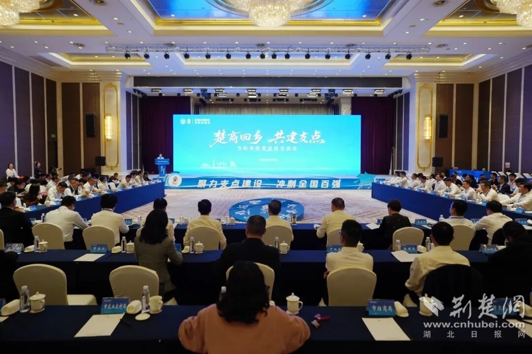 荆楚网(湖北日报网)讯(通讯员彭丹凤、谭昊、唐杉、 冯旻昊)9月26日,当阳市举办“楚商回乡 共建支点”投资促进交流会,百余位海内外楚商代表、企业家、招商招才大使等齐聚义城当阳共叙乡情、共商合作、共谋发展。活动期间成功签约项目18个,协议投资总额172.9亿元,12家企业达成战略合作。市委书记李兴兵出席会议并讲话,市委副书记、市长陈华主持会议。