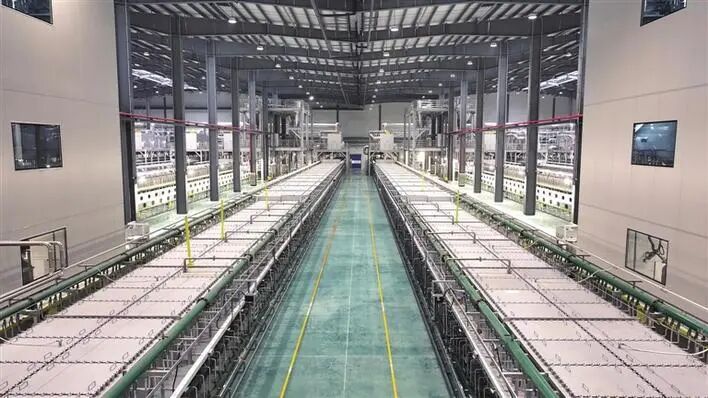 ▲邦普45万吨新一代磷酸铁锂项目生产线。付伟 摄