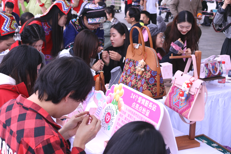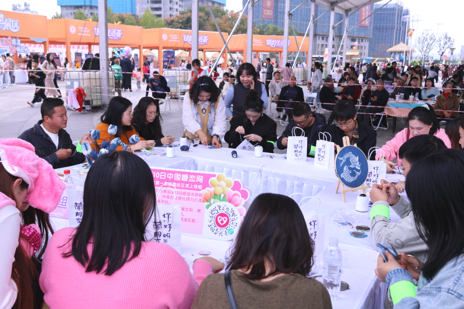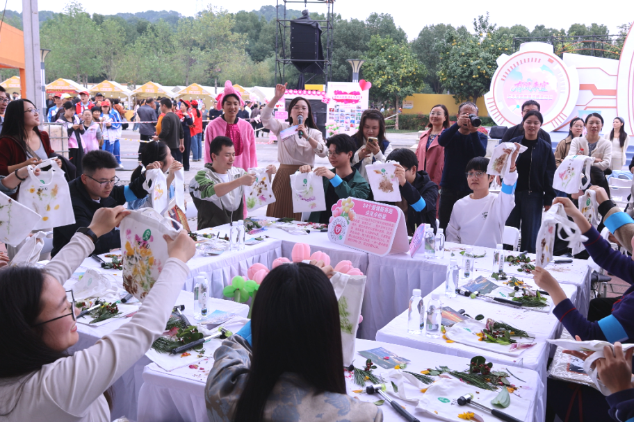 特别设计的幸福婚恋课堂“心动剧场”环节,100位青年通过“肢体接龙”猜词游戏考验彼此默契,在欢声笑语中打破陌生壁垒;情侣踩气球活动让大家迸发青春活力、“为爱转身”心动告白更是甜度拉满,不少青年在真诚表达中收获心动回应,最终积分最高的小组捧走 “心动大奖”,为活动增添了更多惊喜。与此同时,非遗手工体验区成为 “慢交流” 的温馨阵地,青年们在树叶拓印、戒指制作、蓝染活动中一边学手艺,一边了解传统文化,指尖的温度让大家感受时光的美好,亲手制作的小物件化作特殊的 “心动信物”,让浪漫悄然生长。