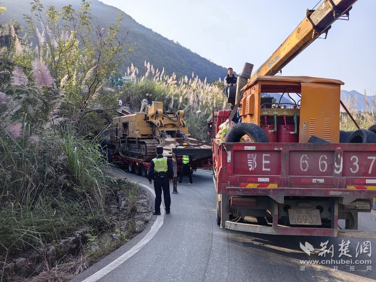 该设备属于葛洲坝集团第一工程有限公司远安抽水蓄能电站通风兼安全洞工程项目,体型庞大、运输难度高。运输路线途经花林寺、高楼、宝华、横岩坪四个村,全程约10公里,多为弯急坡陡、临水临崖的乡村道路,通行条件复杂。为确保运输安全,花林寺派出所提前部署,实地勘查线路,针对复杂路口、涵洞等节点制定了详细运输与应急预案。